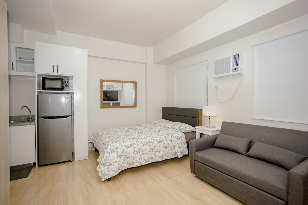 Welcome to our studio condo in downtown Cebu - a cozy retreat just minutes away from the city. Accommodating up to four guests, features a queen bed, sofa bed and new furnishings. Enjoy on-site amenities like a pool, gym, convenience store, cafe, spa & massage, and laundry shop. With 24/7 gated security, you can relax with peace of mind. Whether for a quick getaway or an extended stay, our condo offers comfort & style. Book now for a truly memorable Cebu experience!