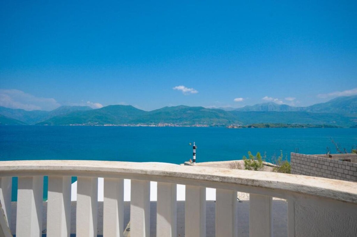 New apartment-studio, 1 km from the airport, well equipped with all furniture that you will need. On the 2nd floor with great view from the terrace over Adriatic sea. Has its own parking space in front of the building. The beach is around 800m away. Quiet area-great for sightseeing for all the tourists who want to explore Kotor, Porto Montenegro, Perast, Budva, Lustica, etc. If you need anything, we live in the same building and we can arrange you assistance.