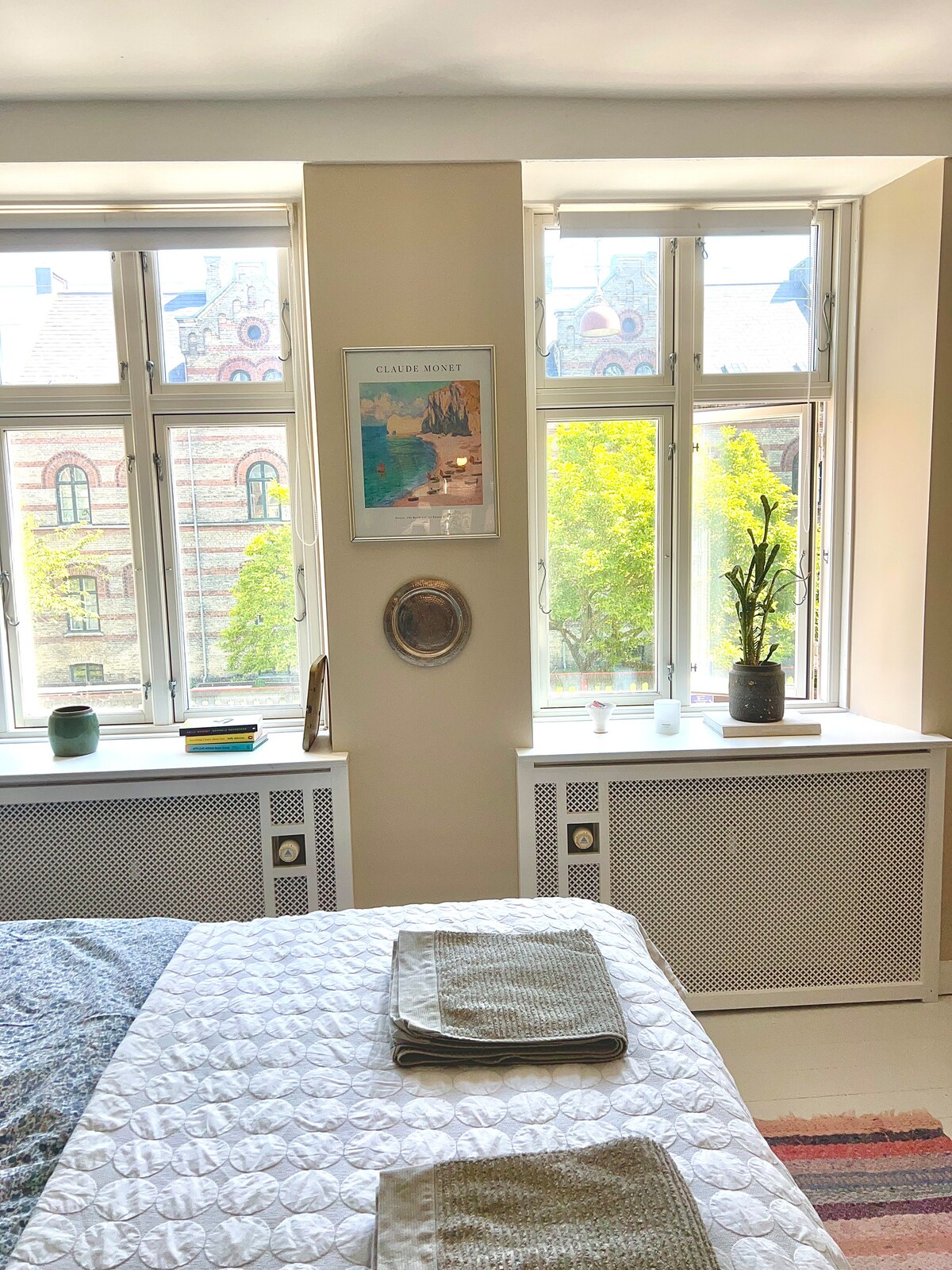 Elegant, spacious apartment (3 rooms, 70m2) in lovely Vesterbro. A hip and urban neighbourhood filled with quirky cafes and shops. One block away from the metro which takes you to the airport and only ten minutes walk to the City centre, close to everything! With beautiful view to opposite church. Quiet area and friendly neighbors. Perfect for 2 persons. 1 bedroom. 2 living rooms en suite. Shower, toilet, kitchen.