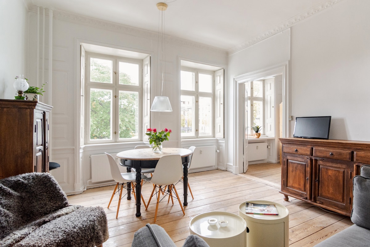 Large, light apartment in the heart of Copenhagen overlooking Peblingesøen – one of Copenhagens three rectangular lakes around the western margin of the city centre, forming one of the oldest and most distinctive features of Copenhagen’s topography. The apartment offers everything a couple or two needs during a vacation or business stay. The same goes for a family of children who have five minutes to Ørstedsparken's two playgrounds and a minute and a half to basketball court.