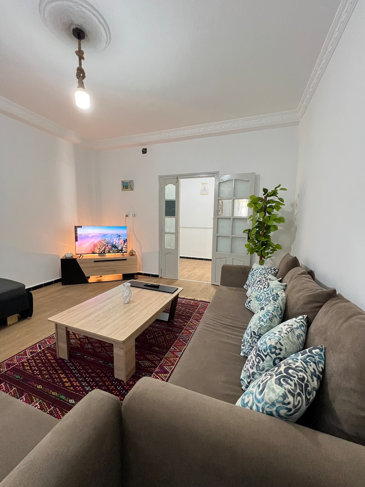 Appartement haut standing à Tizi Ouzou Superbe appartement moderne et lumineux, idéalement situé à Tizi Ouzou, proche de toutes les commodités (commerces, restaurants, transports). Il comprend 3 chambres spacieuses, un grand salon confortable, ainsi que deux magnifiques terrasses parfaites pour se détendre ou partager un repas en plein air. L’appartement allie confort, élégance et tranquillité — idéal pour les séjours en famille