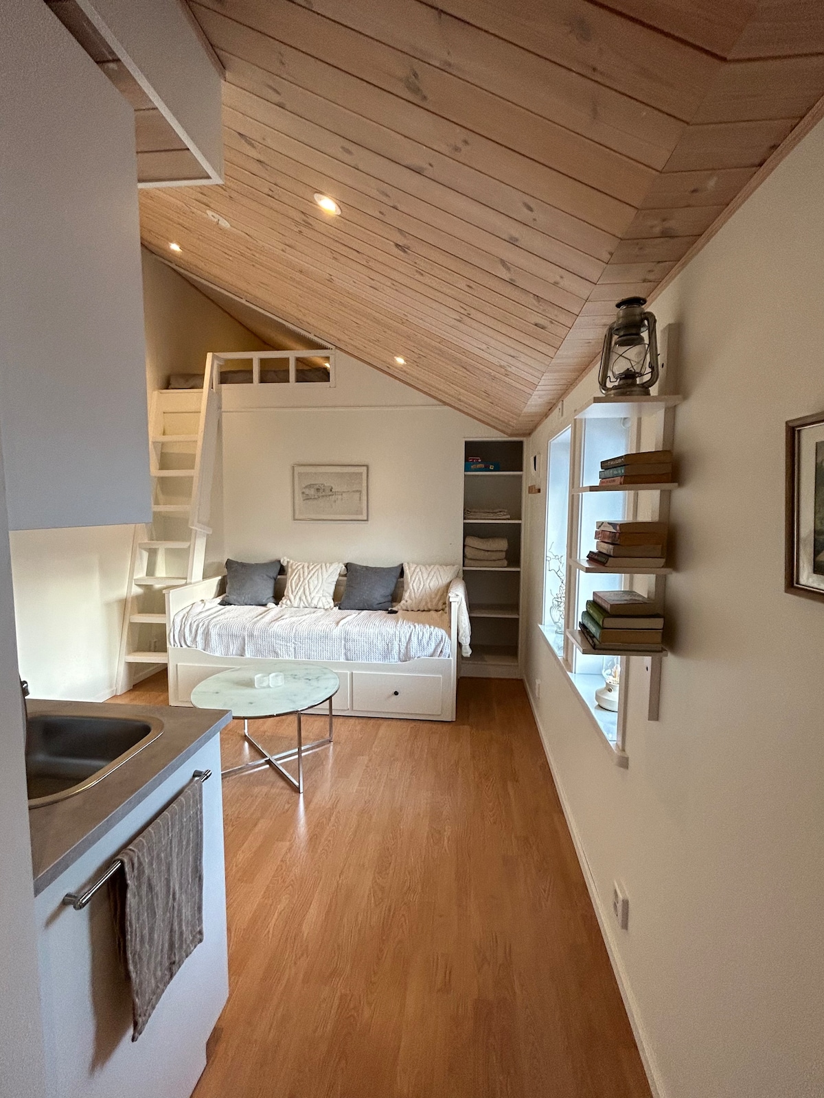 Välkomna till vårat gästhus byggt 2019. Beläget i ett lugnt och fridfullt område i vackra Skärhamn, här har du allt du behöver på promenadavstånd! -Busshållplats 5min -Matvarubutik och systembolag 10min -Södra hamnen med restauranger,butiker,bibliotek,apotek och badplats 15min. Vårt boende består av en dagbädd som dras ut till en 160cm säng och två sovloft med varsin 140cm säng. Ett pentry med kylskåp,mikrovågsugn,och diskho. Sängkläder/handdukar och städning ingår. 20% rabatt vid en vecka.