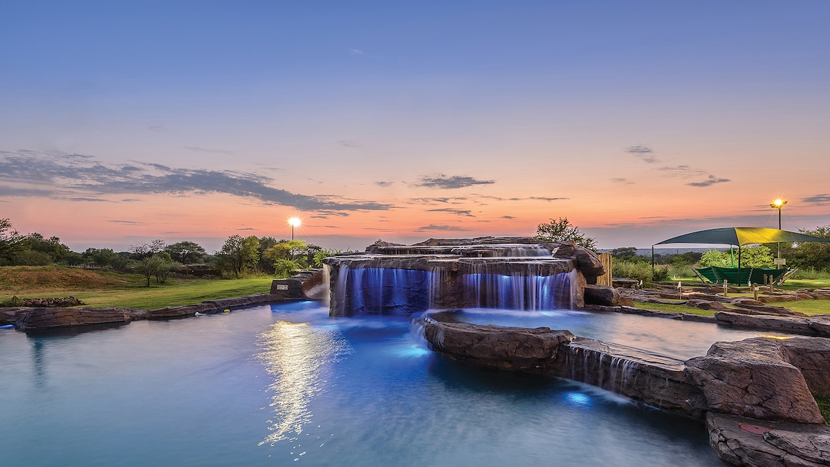 Frá skálanum okkar á fjallinu er besta útsýnið yfir Magaliesberg. Útsýnið yfir dalinn er magnað og þú munt njóta kyrrðarinnar frá veröndinni. The Lodge er hefðbundið kjarrlendi og hefur verið uppfært með nútímalegu og listrænu ívafi. Þrátt fyrir að vera í stuttri 1 klst og 10 mín akstursfjarlægð frá borginni verður þú flutt/ur í miðja náttúruna í þessu rúmlega 2.000 hektara leiksvæði. Zebras, gíraffar, babúar og bókafólk reika frjálsar með stöku sinnum í heimsókn á drykkjarholuna okkar.