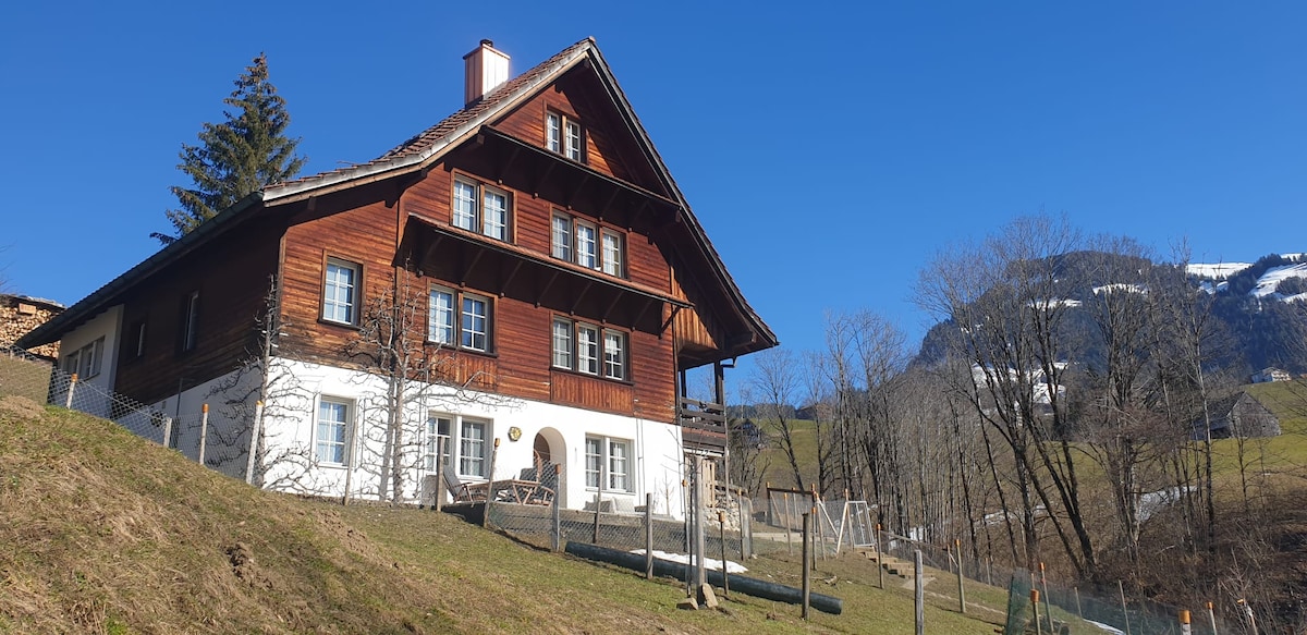 Angenehme neu renovierte 3 Zimmerwohnung mit neuer Küche, Bad, grosser Wohnstube mit toller Aussicht. Eigener Sitzplatz mit Feuerschale. Parkplatz. WLAN steht zur Verfügung und die Umgebung ist kinderfreundlich. Die Region Obertoggenburg eignet sich hervorragend für Wanderferien mit Klangweg, diversen Seilbahnen (z.B. Säntis / Chäserugg). Im Winter locken verschiedene Skigebiete welche zum Teil Familienfreundliche Angebote haben. Die obere Wohnung wird von unserem Junior bewohnt.