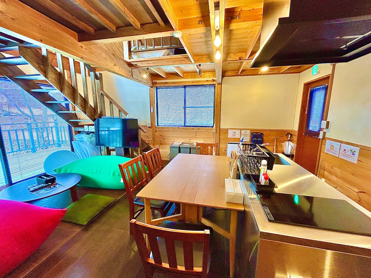 5 mínútna göngufjarlægð frá Oga stöðinni!Þægilegt að sofa í, fullbúið með eldhúsi!Öll tveggja hæða byggingin rúmar allt að 6 manns.