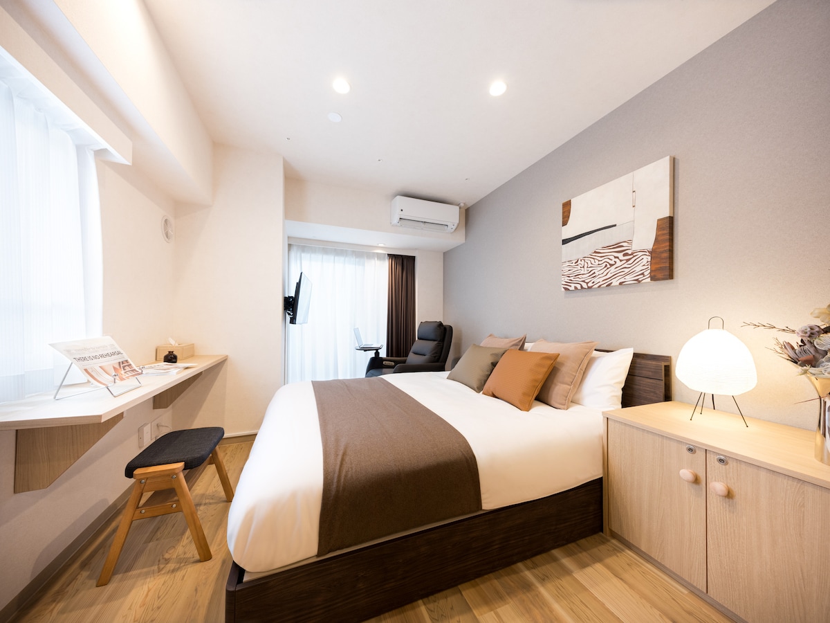 Acori Asakusa is a self-check-in studio, just an 8-minute walk from Asakusa Station and close to popular spots like Kaminarimon Gate, Senso-ji Temple, and Tokyo Skytree. The room is a clean, calm space with thoughtfully selected furniture and premium bedding. High-speed Wi-Fi and air conditioning make it well-suited for both short and extended stays. A full kitchen, washer-dryer, and ceiling projector round out a comfortable base in central Tokyo.