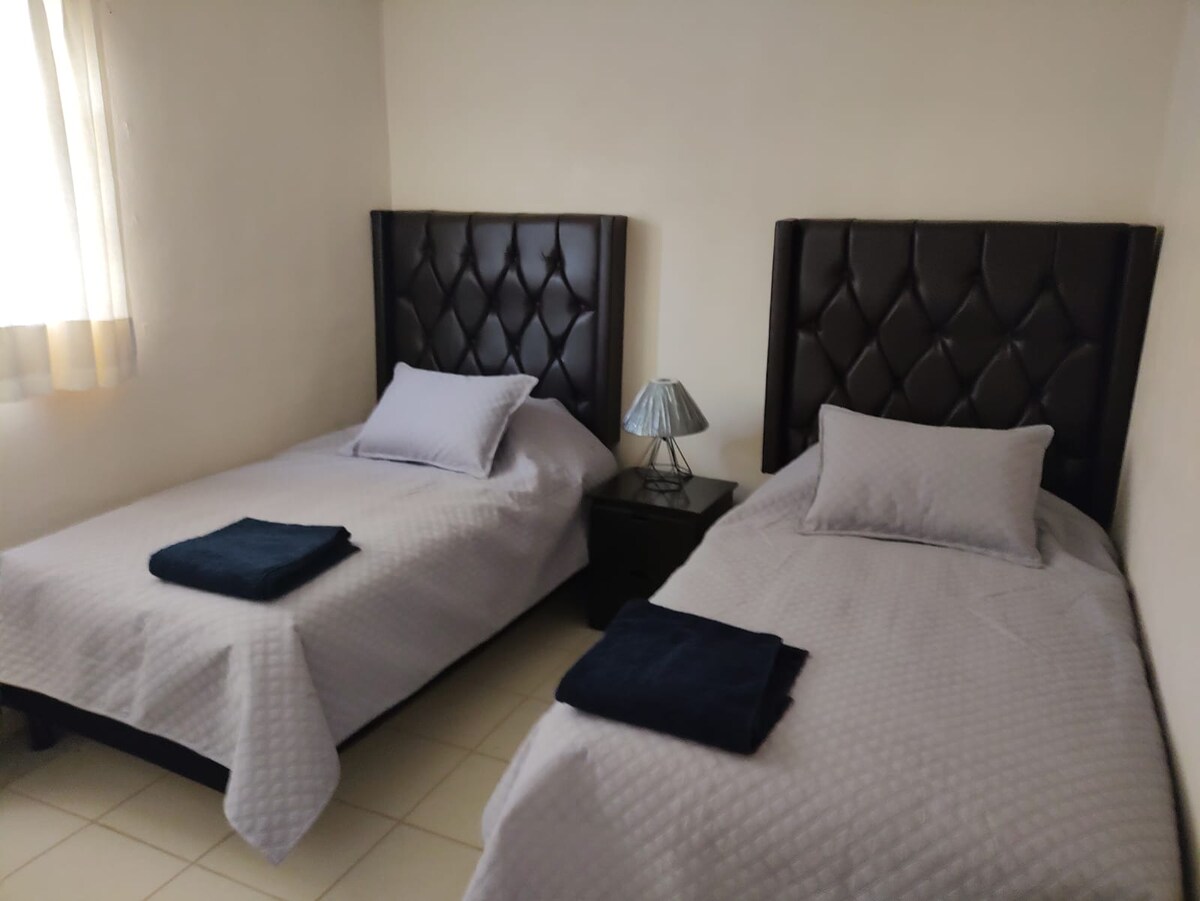 Slakaðu á í þessu rólega og notalega og örugga rými sem er tilvalið að koma með vinum og/eða fjölskyldu. Þróunin er með tvöfalda öryggissíu. Þetta er staður til að hvílast og þekkja staði nálægt Hidalgo eins og Pueblos Magicicos, Real del Monte, Huasca, Prismas Basálticos, Presa el Cedral, "Hidalgo Football Stadium", AIFA 25 mín og margt fleira. Einnig Tizayuca centro 20 mín.