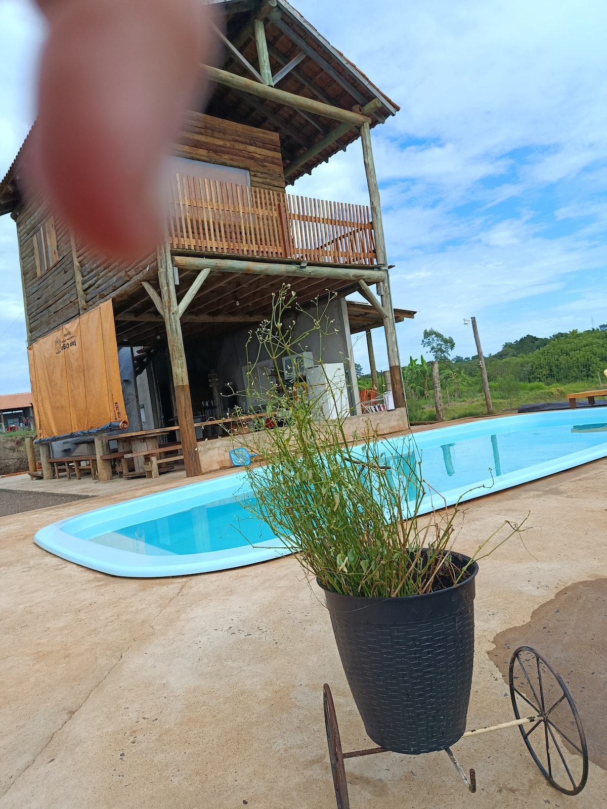 Um lugar exclusivo, ideal para família, amigos ... Área rural, mata, um céu azul lindo, e a noite, quando o céu está sem nuvens, para quem gosta de observar as estrelas, elas são um espetáculo. Cachoeira próximo. Cabana com wi-fi, área de churrasqueira, piscina, mesas e banheiro, freezer, geladeira, cozinha, fogão, panelas, pratos , talheres, copos(tudo no térreo) Quarto no piso superior com: uma (1) cama de casal com mosquiteiro , (2) duas camas de solteiro, TV, aparelho HDTV, ventilador.