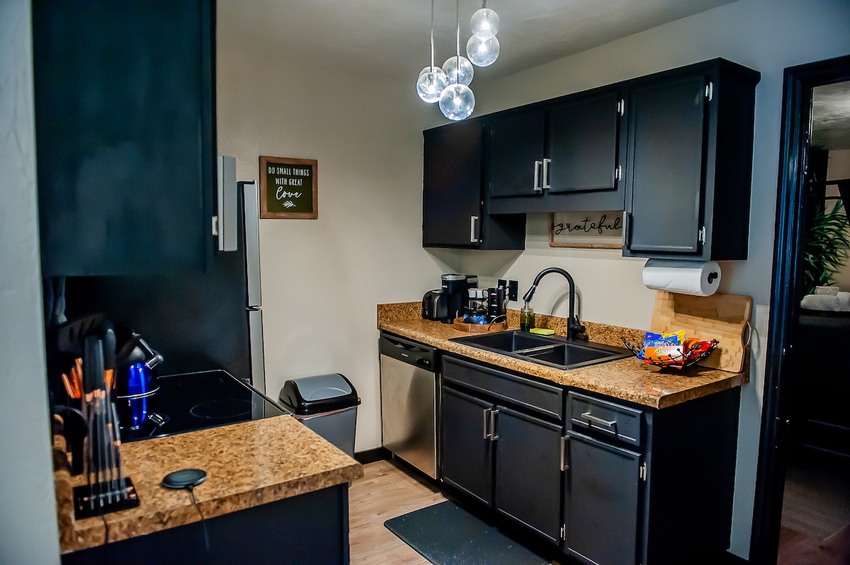 Þetta nýuppgerða og glæsilega raðhús með einu svefnherbergi er rétti staðurinn fyrir þig! Black Lux er blanda af gömlum sjarma og nútímaþægindum sem veita borgarlandsstemningu. Hún er miðsvæðis í öllu en einnig mjög persónuleg. Heimilið okkar býður upp á svo mörg ótrúleg þægindi sem gera dvöl þína eins og heimili að heiman eins og sjálfsinnritun, þvottavél/þurrkara, heimaleiki, einkaverönd utandyra, handahófskennt lítið sælgæti og bestu þjónustu við viðskiptavini. Það eru litlu hlutirnir sem skipta máli!