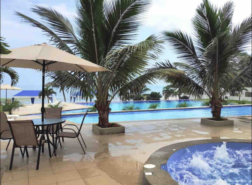 Oceanfront svíta með internetþjónustu; staðsett í Tonsupa-Esmeraldas í Playa Azul Resort, fullbúin með eldhúsi í amerískum stíl. Flatskjásjónvarp með Directv-þjónustu er innifalið í verði. Tveir svefnsófar. Herbergi með king-size rúmi, 2 fullbúin baðherbergi, stórar svalir með tágastofu og borðstofu í gömlum stíl þar sem þú munt njóta morgunverðar og hádegisverðar með útsýni yfir hafið. Virði það, farðu vel með það og njóttu hvers smáatriða.