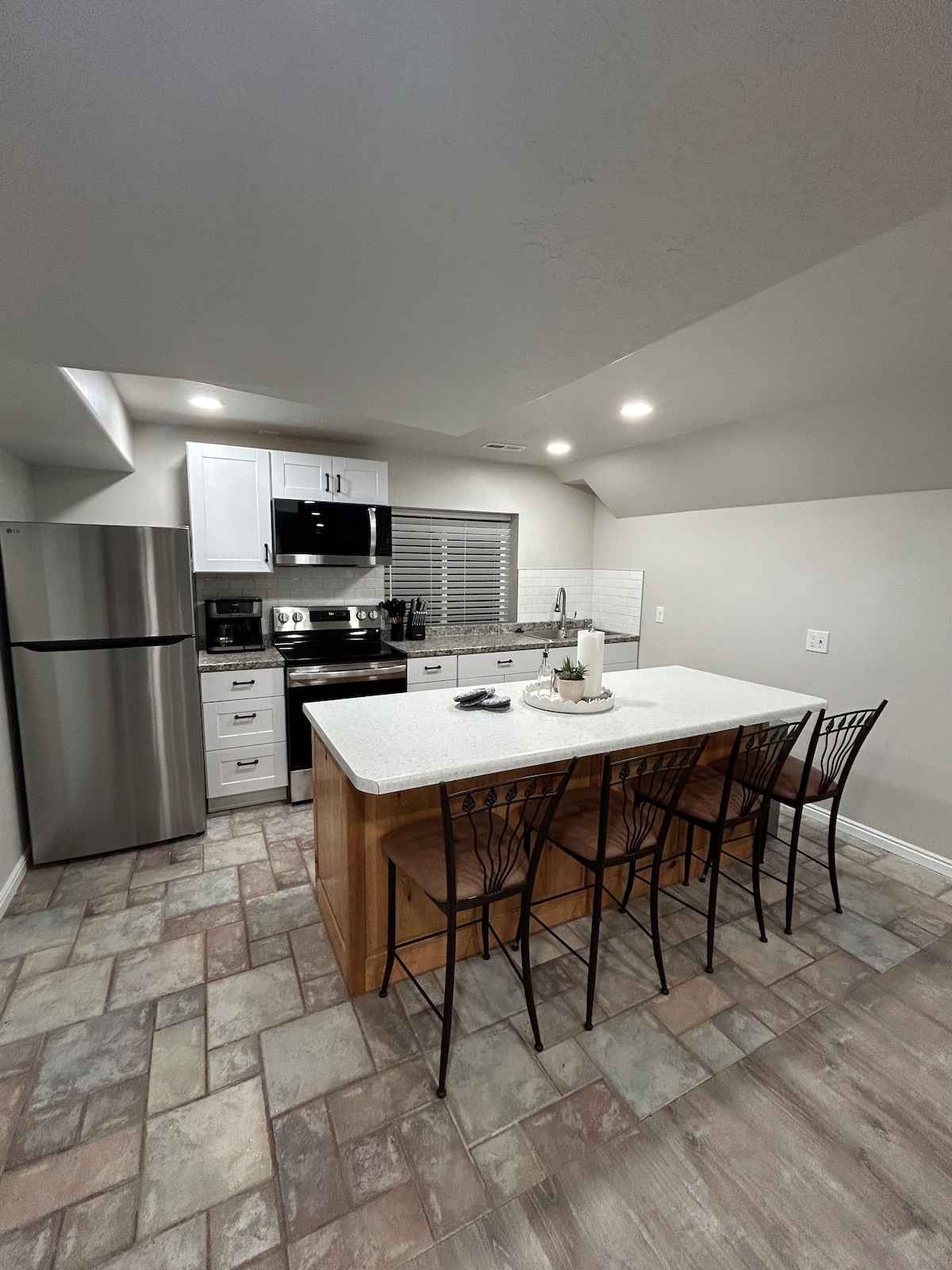 Í fullbúnum kjallara eru þrjú svefnherbergi með flatskjásjónvarpi í hverju herbergi. U.þ.b. 2000 fm. Reykingar bannaðar, engin gæludýr. Fullbúið baðherbergi og aðskilið púðurherbergi með þvottavél og þurrkara sem hægt er að stafla upp í fullri stærð. Stofa með 70 tommu flatskjásjónvarpi, umgjörð og rafmagnsarinn. Eldhúskrókur með ofni, eldavél, örbylgjuofni, ísskáp, vaski og Keurig-kaffivél. Borðtennisborð, mini-hoop skotleikur, DVD-diskar með 4K Blue-Ray spilara, körfuboltahringur. Eldstæði utandyra. Sérinngangur með eigin bílastæði.