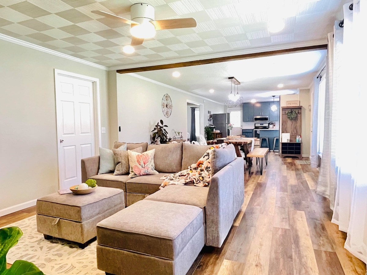 Slappaðu af með fjölskyldu, vinum og/eða viðskiptafélögum. Þetta nýuppgerða heimili er í rólegu hverfi með afgirtum garði og veitir frið og næði. Á meðan þú slakar á getur þú einnig spilað körfubolta, fengið aðgang að eldgryfjunni eða setið úti og notið veðurblíðunnar. Í hverju svefnherbergi er rúm af Queen-stærð með myrkvunargluggatjöldum. Heimilið er í 3 mínútna fjarlægð frá Dollar General og miðbæ Lyons til að borða/versla. Heimilið er einnig í 10 mínútna fjarlægð frá Walmart, 9 mínútna fjarlægð frá Meadows-sjúkrahúsinu og 27 mínútna fjarlægð frá Plant Hatch.