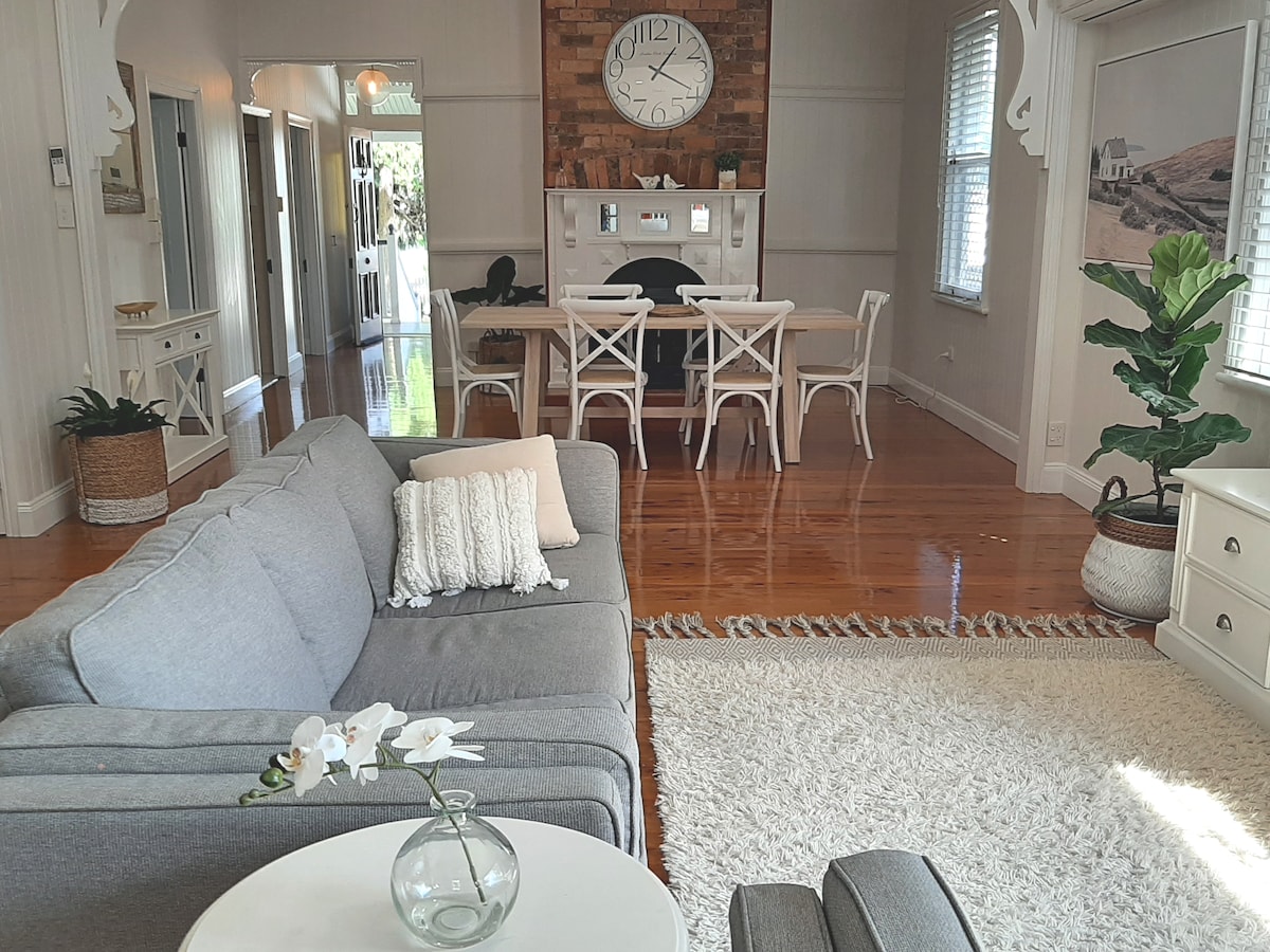 Nýuppgert heimili okkar í Toowoomba borg er í göngufæri við CBD, almenningsgarða, kaffihús, helstu verslunarmiðstöðvar. Eignin okkar er einnig undir 1 km fjarlægð frá Toowoomba Base sjúkrahúsinu. Við höfum sett eignina upp með fjölskyldu þína í huga og getum tekið á móti loðnum vinum þínum (aðeins fyrir utan) Við bjóðum einnig upp á þægilegt rými fyrir hinn annasama fagaðila með sérstakri vinnuaðstöðu. Fyrir þá sem njóta þess að sitja úti til að slaka á erum við með sæti utandyra að framan og aftan við húsið
