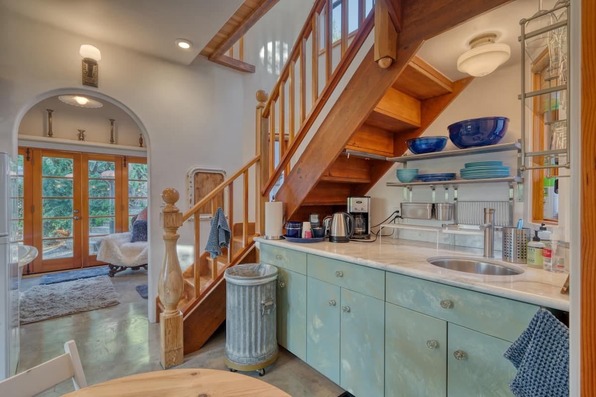 Farðu aftur til fortíðar í þessu tveggja hæða rými sem er hannað til að njóta útsýnisins sem best. Hugulsamlega safnað vintage-munum í bland við fjölmargar plöntur, margar bækur og plötuspilara. Fylgstu með dýralífinu gegnum gluggana. ATHUGAÐU: við búum á svæði sem er umvafið villtum lífverum, hestum, hundum og fjölda planta (hverfið okkar heitir Fernwood vegna þess að það er grænasta og gróskumikla svæðið frá sjávarútveginum) svo að ef þú ert með ofnæmi eða ofnæmi hentar þessi staður kannski ekki best fyrir þig. Við leyfum einnig stundum hunda, aðeins ef þeir eru samþykktir fyrirfram. Rýmið á efri hæðinni er bjart og rúmgott og allt um útsýnið! Eldhúsið er fullt af annarri hendi og nýjum eldhústólum. Mér finnst æðislegt að safna fallegum tréskálum og leirlist, tilvalinn til að sýna heimagerða rétti. Við reynum að hafa nóg af nauðsynjum í eldhúsinu eins og ólífuolíu, balsamediki, sjávarsalti, hvítlauk, sinnepi, tómatsósu, sojasósu og fleiru. Þá þarftu ekki að hafa áhyggjur af því að sækja svona marga hluti í verslunina. Baðherbergið er lítið og látlaust en þú hefur allt sem þú þarft. Ég var einnig með körfu með strandhandklæðum. Farðu niður í opið svefnherbergi með viðarlofti og stórum skáp. Rúmið er glænýtt Tuft & Needle King. Það er skrifborð ef þú þarft að sinna vinnunni. Herbergið opnast upp að lokuðu, hálfgerðu einkarými utandyra. Við búum hinum megin við aðalhúsið svo að þú gætir séð glitta í gegnum friðhelgisskiptinguna. Mér er alltaf ánægja að bjóða upp á jurtir eða grænmeti í garðinum. Það eru steypt gólf og mikið af náttúrulegum viðargólfum í eigninni. Það er vegghitari í hverju herbergi svo að allt sé notalegt. Heimili okkar var byggt á sjötta áratug síðustu aldar og var síðan uppfært mikið á áttunda og tíunda áratug síðustu aldar þegar hippasamfélag sem kallaðist „friðarbýlið“ bjó hér. Það eru mörg sérkenni en þess vegna elskum við Topanga :) Hinum megin við veröndina er húsagarðurinn okkar þar sem eru tvö garðrúm. Endilega kíktu á þær og veldu jurtir. Við sjáum oft þvottabjörn, gaupa, íkorna og jafnvel snák í garðinum okkar. Hafðu því ávallt í huga hvar þú ert að ganga. Einkainngangurinn þinn er við hliðina á bílastæðinu í innkeyrslunni svo það eru góðar líkur á því að þú rekist á okkur. Við vinnum mikið og erum alltaf úti við og við elskum að hitta gesti svo við getum verið til taks ef þú vilt hitta og fá ábendingar um staðinn. Ef þú vilt getum við haldið fjarlægð okkar;) Röltu eftir leynilegum stíg í burtu til að hitta vinalega nágranna og hunda. Þægilega sjávargolan hefur í för með sér að heimamenn kalla þetta svæði „fullkomið loftslag í Fernwood.„ Þaðan er minna en 15 mínútna ganga að ströndinni vestanmegin í Topanga. Við erum í hæðótta hluta gljúfursins sem þýðir besta útsýnið en einnig brattar götur. Taktu því rólega og njóttu náttúrunnar! Hverfið er þekkt sem Fernwood vegna gróskumikils landslagsins sem hentar mögulega ekki vel fyrir ofnæmi. Það er betra að hafa bíl í LA vegna þess að það er svo breitt út. Þú getur gengið til litla bæjarins okkar Topanga frá húsinu okkar en það er um það bil 2 mílur niður og þá verður þú að ganga aftur upp!! Þetta er ekki slæmt hjá okkur. Hér eru einnig frábærir göngustígar steinsnar frá okkur. Í bænum okkar er frábær hjólaverslun þar sem hægt er að leigja fjallahjól og þar er að finna mikið af upplýsingum um hvert eigi að fara. Uber & Lyft koma hingað þegar óskað er eftir því en það krefst stundum þolinmæði. Við erum í um 10-15 mínútna akstursfjarlægð frá ströndinni á staðnum með mikið af ókeypis bílastæðum við Topanga Blvd (skoðaðu skiltin til að tryggja að þú sért á ókeypis bílastæði). Í fyrsta sinn sem þú ekur að húsinu okkar getur verið að þú sért frekar stressuð/aður af vindasömum kúrfum vegarins! Það gæti virst endalaust en það er í raun aðeins 1 míla frá aðalgötunni að húsinu okkar. Keyrðu hægt og kíktu á kennileitin... fallegar klettamyndanir, froskarnir syngja við lækinn og sérkennilegu húsin! Við erum með tvo litla hjálparhunda sem verða mjög spenntir þegar nýtt fólk kemur í heimsókn. Ef þér líkar því ekki við hunda er þetta mögulega ekki besti kosturinn ;) Við tökum þá með okkur hvert sem er og því verða engir ánægðir hundar að eyðileggja friðsælt afdrep þitt. Við búum einnig við hliðina á hestum og því gæti verið einhver áhugaverður hávaði allan daginn og nóttina. Það er mjög takmarkað bílastæði í litla kúltúrnum okkar svo að við biðjum þig um að leggja á ákveðnum stað í innkeyrslunni. Ég mun senda þér leiðbeiningar áður en þú kemur á staðinn. Ef þú reykir skaltu nota tilgreindan öskubakka á veröndinni. Við erum á eldsvæðinu og því skaltu ekki reykja nálægt burstanum. Ef þú reykir inni þarf ég að taka USD 200 gjald af tryggingarfénu þínu. Reykingar í gljúfrinu eru fallegar þar sem allir hafa svo miklar áhyggjur af eldsvoðum svo að ég mæli með því að þú takir með þér gufupenni til að koma í veg fyrir glampa ;) Það er ekki gott að taka á móti farsímum í gljúfrinu svo að við biðjum þig um að vera ekki með neina þjónustu fyrr en þú tengist þráðlausa netinu. Búðu þig undir rafmagns- og netleysi, lokanir á vegum, brottflutning, köngulær og fleira! Þú ert ekki í borginni og allt getur orðið villt hérna ;) Eins og á við um flestar eignir á Airbnb leyfum við ekki óskráða gesti í eigninni án samþykkis okkar. Spurðu því hvort þú viljir fá gesti í heimsókn og ég er viss um að við getum tekið á móti þeim!