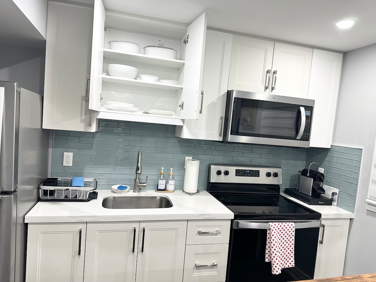 1 svefnherbergi • 1,5 baðherbergi • Öll einkaeignin Nýuppgerð og hljóðlát, í nokkurra mínútna fjarlægð frá Hwy 401 og veitingastöðum á staðnum. Aðalatriði • Einkasjálfsinnritun • Bílastæði í heimreið fyrir 1 bíl • Einkabaðstofa • 55 tommu sjónvarp með Netflix Þægindi Hrein handklæði, rúmföt, tannburstar og pasta, hárþurrka, nauðsynjar fyrir heimilið, nauðsynjar fyrir sturtu og aukakoddar/handklæði sé þess óskað. Tandurhreint heimili, hraðsvör og þægindi þín tryggð. Bókaðu af öryggi.