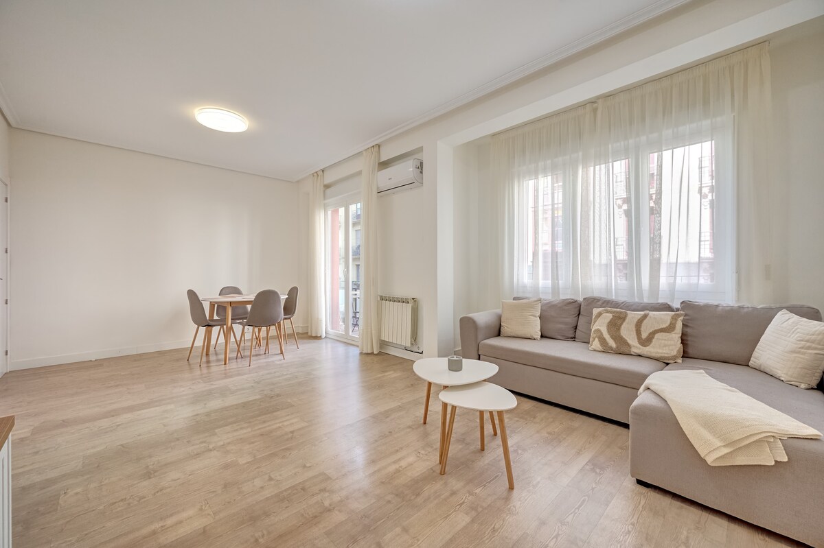 Björt og notaleg íbúð í miðbæ Logroño, við glæsilega götu nálægt Gran Vía, gamla bænum og Calle Laurel. Njóttu miðborgarinnar án krárhávaða eða morgunbjöllu. TILBOÐ: ÓKEYPIS BÍLASTÆÐI og MORGUNMATUR (í boði, sjá mynd). Endurnýjuð, með öllum þægindum: ný dýnur, 2 baðherbergi, rúmgóð stofa, búið eldhús, þráðlaust net og sjónvarp í öllum herbergjum. Svalt; á sumrin með loftviftum og færanlegri loftkælingu.