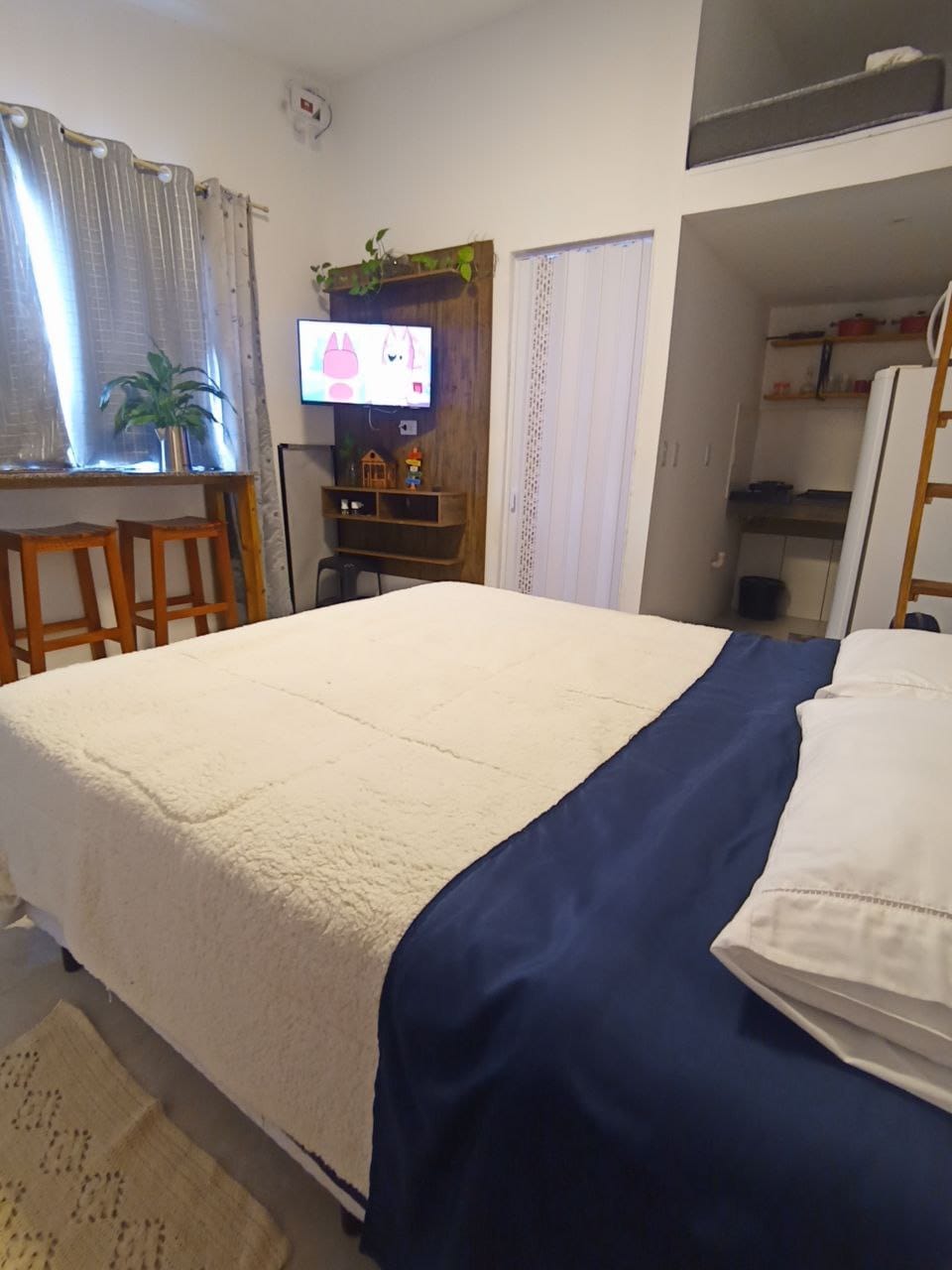 Kitnet við Praia da Cal, nálægt helstu kennileitum borgarinnar. Svefnpláss fyrir allt að 3 manns. • Innbyggt herbergi og eldhús • Einkabaðherbergi • 24"sjónvarp með Netflix og Max gefið út • Vifta • Eldhúsáhöld • Tankur og föt á útisvæðinu Garðurinn er sameiginlegur.