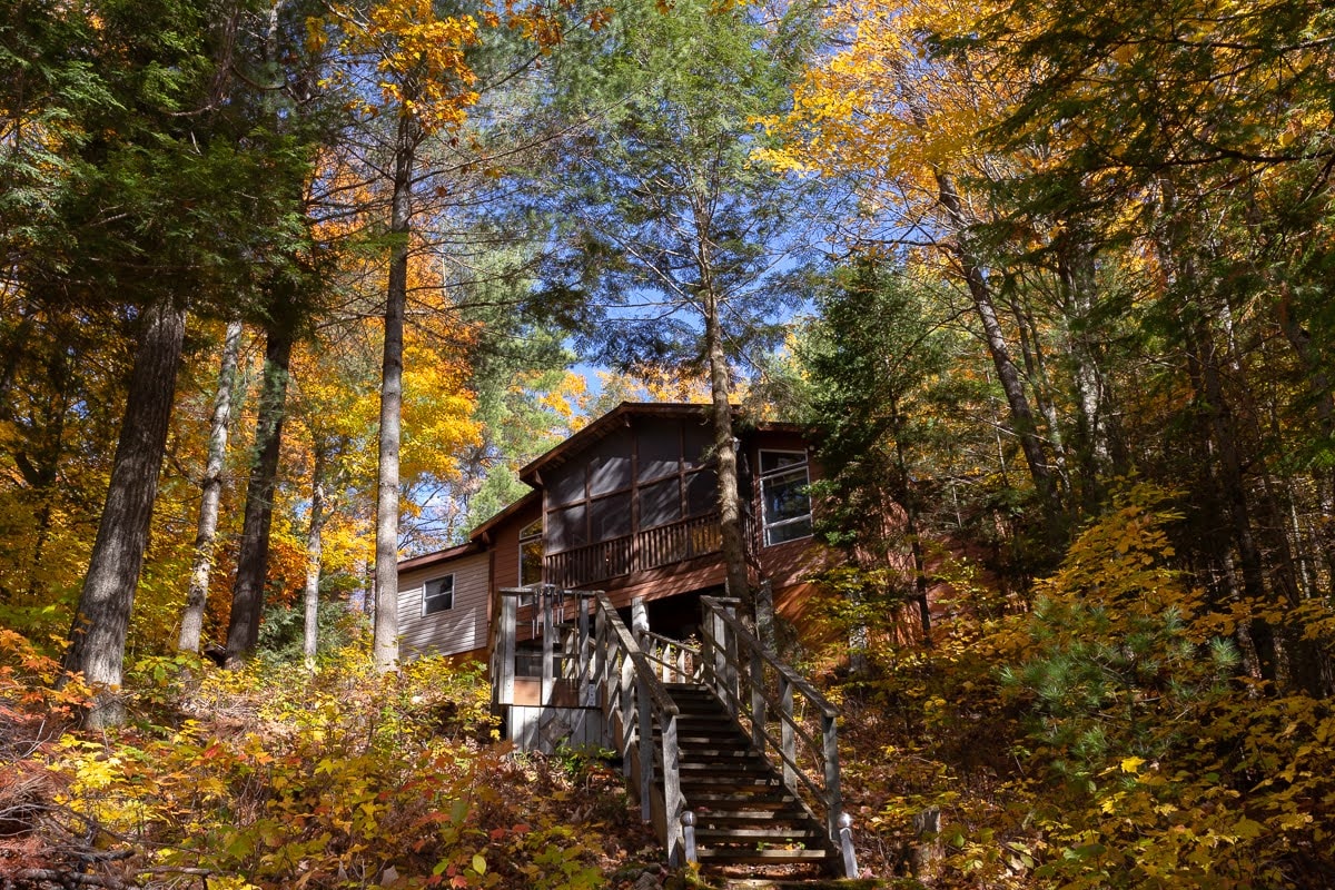 Njóttu kyrrðarinnar í skóginum og sjarmann í A-rammahúsi. Slökktu á umheiminum og njóttu fegurðarinnar sem allar árstíðir hafa upp á að bjóða í þessum notalega kofa. Verðu dögunum í að skoða slóða sem liggja í gegnum 50 hektara einkaskóg og næturnar í kringum útield. Nálægt verslunum og veitingastöðum í Haliburton Village (10 mín akstur). Tilvalið fyrir par eða fjölskyldufrí. STR-24-00027