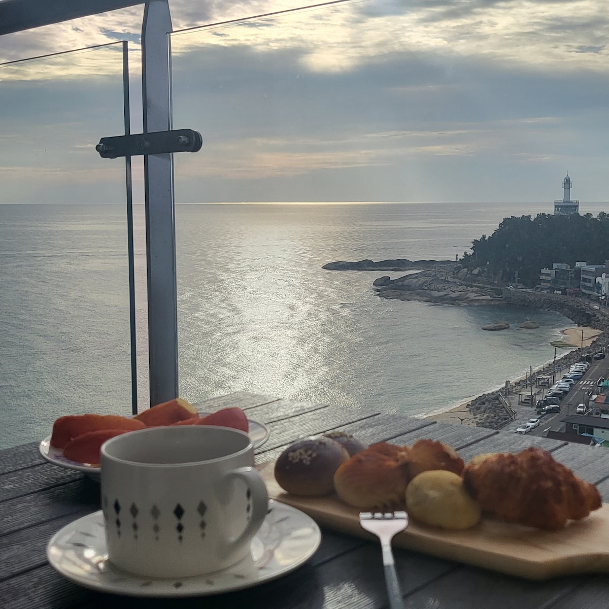 Það er ný bygging á 16. hæð á 19. hæð og Sokcho Beach.E-mart, Sokcho Express Terminal, Oeongchi Port Dulle-gil (Sea Scent Road) og Daepo Port eru mjög góðir staðir sem hægt er að ná á um 3 ~ 10 mínútna göngufjarlægð. Það er í 10 mínútna akstursfjarlægð frá Seoraksan. Það er mjög stutt frá Sokcho Central Market, Cheongcho Lake og Dongmyeong Port innan 10 mínútna akstursfjarlægð. Það er mjög nálægt Manseok Chicken Gangjeong, Cheongchosumushuhoe, Abai Village og Bongpo Meoguri House og hinu fræga Sokcho Jar Mulhoe House og Udon-dang eru í 3 mínútna göngufjarlægð. Það er frábært að rölta um á morgnana í gegnum sjóinn. Sólarupprásin er einnig mjög góð.