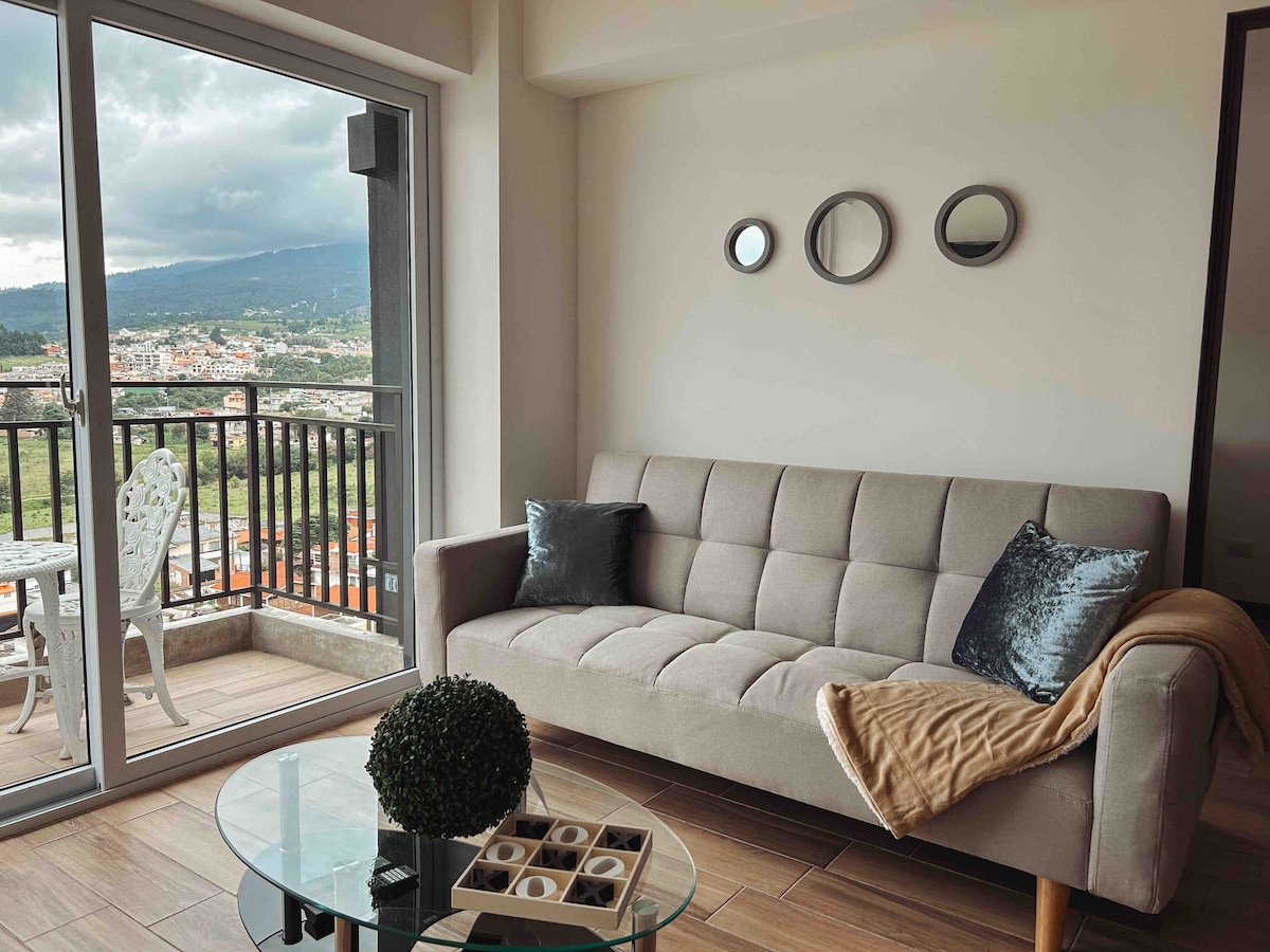Acogedor apartamento en un complejo de apartamentos en el centro Histórico de Quetzaltenango. Perfectamente ubicado para disfrutar de la ciudad y luego relajarse y descansar. Ideal para familias con dos niños pequeños o parejas.Este edificio se construyó en 2021 con detalles especiales para que los huéspedes se sientan como en su casa fuera de casa. Haremos lo posible para brindarte una experiencia inigualable en tu visita a Quetzaltenango.