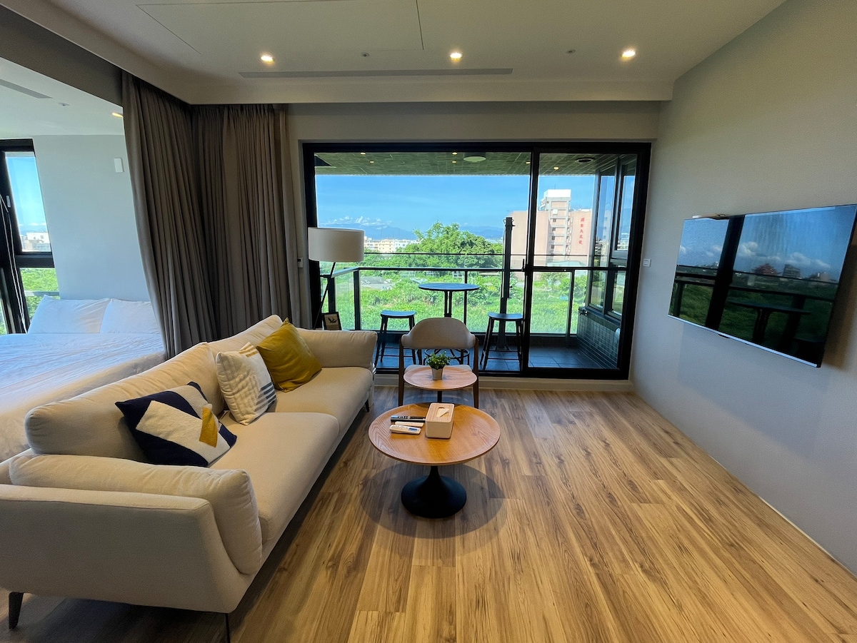 * * * Einungis í Doucheng - Útritun kl. 12 á hádegi * * * Það er heitt lindarbað í herberginu (það er mjög heit lind!) Lítið útisvæði þar sem þú getur notið ruggustóls, drukkið smá vín og notið kyrrláts útsýnis yfir hið einstaka Toucheng. Mikið pláss inni fyrir marga! Sem Wenqing... að lesa bók á nuddstól með útsýni yfir landslagið Að sitja og hlusta á tónlist í rúminu Þetta er einstaklega notalegt síðdegi. Þú sem yfirmaður... Á ferðalagi með nokkrum undirmönnum Talaðu um framtíðarsýn fyrirtækisins, hluti sem þú talar vanalega ekki um Að auka tilfinningar hvors annars Þú sem foreldri...... Herbergið er vel búið eldunaráhöldum Komdu með fjölskyldunni til að elda heitan pott og borða Njóttu hátíðarinnar. p.s opposite sports park for small kids & dog walking Þú ert frábær elskhugi...... Komdu með hinum helmingnum til að halda upp á afmælið, brúðkaupsafmælið Talaðu um brandara á svölunum Fann aftur til þegar við hittumst fyrst Að vera Tesla flutningabílstjóri... Meðfylgjandi Tesla 1450 hleðslubíll, rafbílavænn!