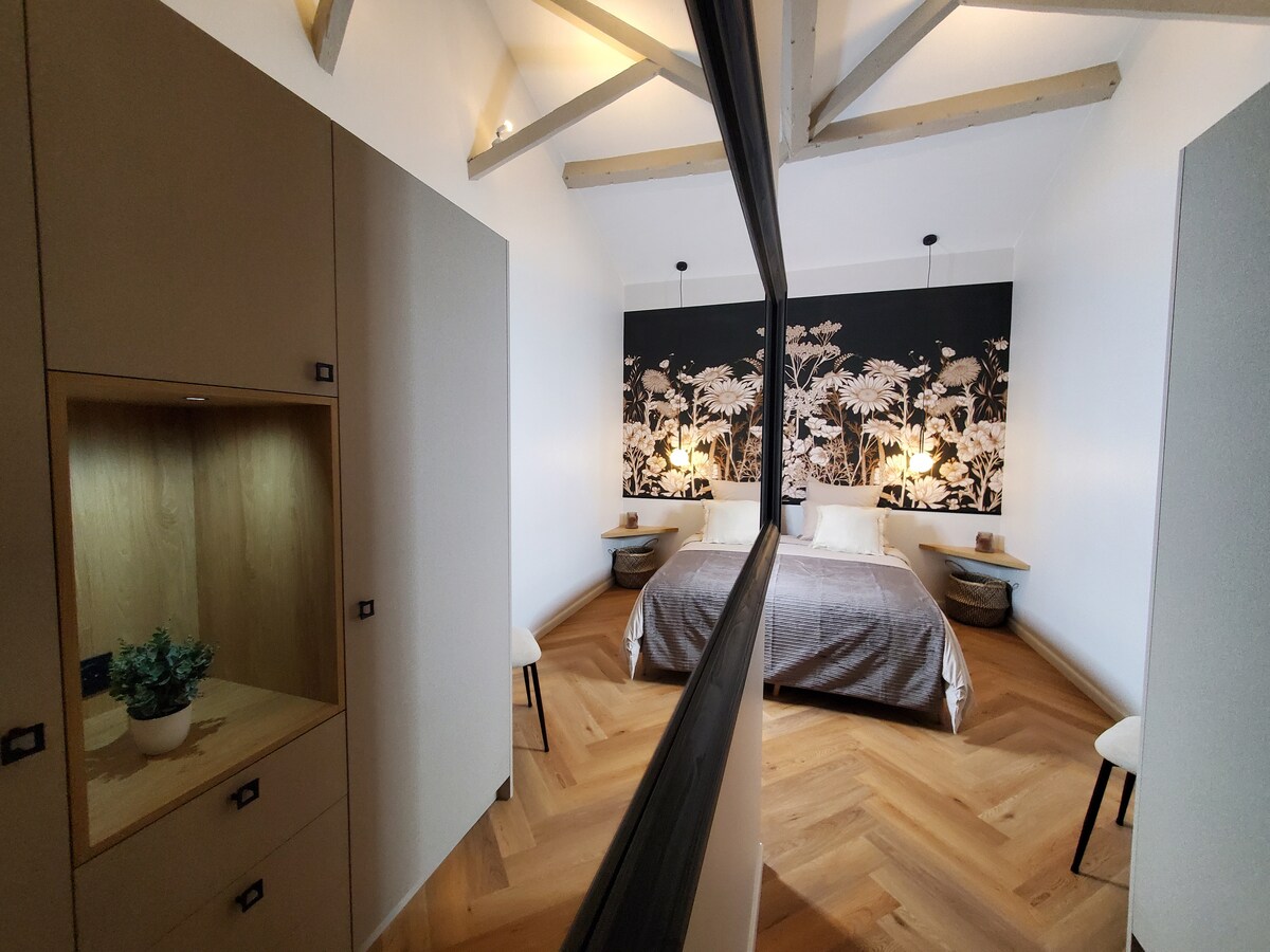 Verið velkomin í þessa einstöku nýuppgerðu íbúð sem sameinar nútímann og virðingu fyrir Gallo-Roman arkitektúr Toulouse-svæðisins. Þessi eign er staðsett á friðsælu svæði í miðborg Toulouse og er hugsað sem alvöru kokteill. The Strong Points of the Apartment; - Svíta með Bain Romain Privatif - Bíóstofa - Óhefðbundnar skreytingar og hönnun - Local Materials and Gallo-Roman Architecture - Chalereal og þægilegar vistarverur - Samgöngur