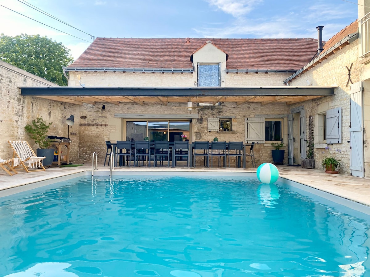 Je loue cette agréable maison au cœur de la Touraine. Vous pourrez vous y reposer et vous amuser. Spacieuse et adaptée pour une grande famille ou entre amis. Très agréable pour 12-17 pers. 6 chambres et 12 couchages : 5 lits doubles, 7 simples + 1 lit parapluie sans matelas (BB) + un mini parc BB. 4 sdb, 4 WC. Piscine : 8x5m chauffée du 01/06 au 15/09, vélo immergé, jacuzzi, TV, tapis de course, fléchettes, Flipper, baby foot, 2 jeux d’arcade de bar, Ping pong, palets, badminton… et le jardin.