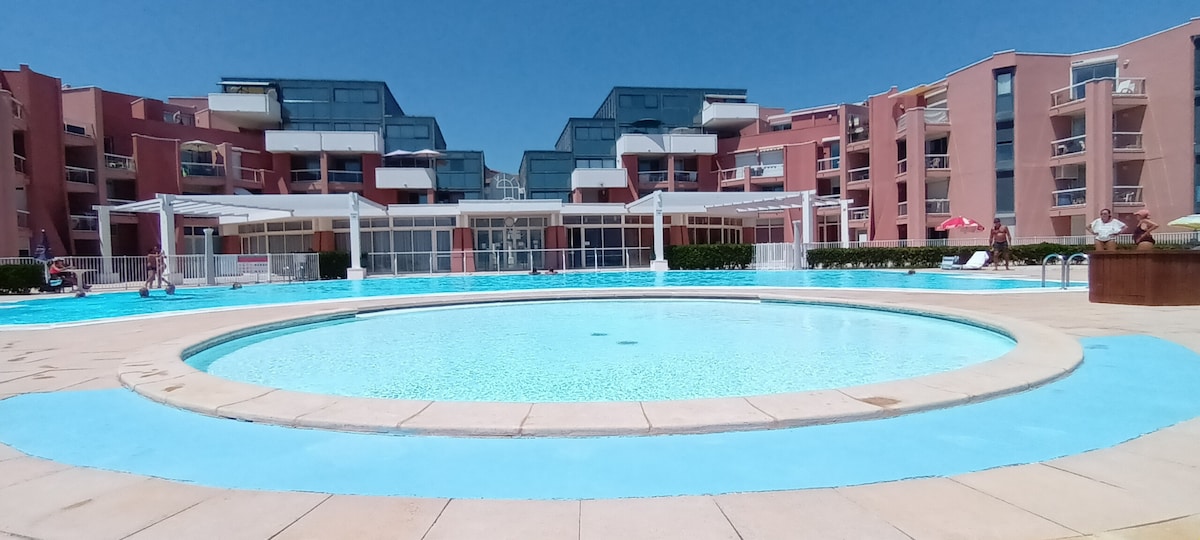 Tilvalið fyrir fjölskyldur með börn. Miðbærinn, sem snýr að tjörninni, verslanir í nágrenninu. Mjög góð séríbúð á 45 m² uppgerð, loftkæld, hljóðlát Útsýni yfir garðinn 1 svefnherbergi 1 rúm 2pl + sófi BZ 2pl, barnarúm sé þess óskað. Stór fullbúinn og skógivaxinn garður með sundlaug ofanjarðar og leikjum fyrir börn Falleg einkaverönd sem hentar vel fyrir morgunverð og hlýlegir kvöldverðir, plancha og grill. Strendur í 2 km fjarlægð Mögulegir 3/4 manns í + stúdíói spyrja okkur.