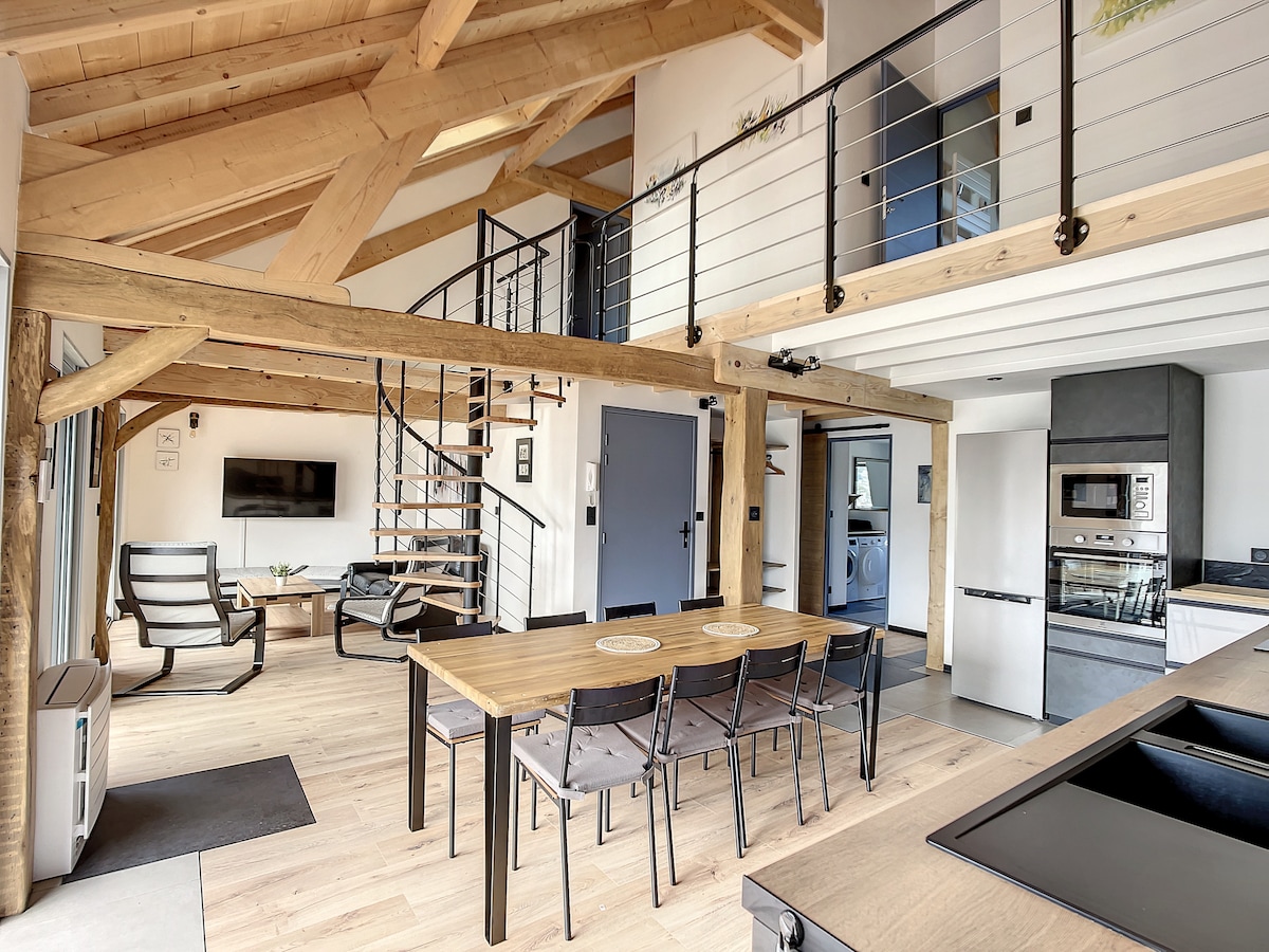 Íbúð 100% cocooning, á annarri hæð í lítilli byggingu. Róleg staðsetning á meðan þú ert staðsett í hjarta þorpsins, með nægum bílastæðum sem eru ekki í einkaeigu. Notalegt 35 m2 hreiður fyrir 4 manns, hlýlegt og fágað. 100 m2 verönd og einkagarður. Svefnpláss: 1 svefnherbergi með rúmi í 140x190 og stórum fataherbergi, Svefnsófi með alvöru dýnu í 140x190 rúmum við komu. Fullbúið eldhús. Sturtu baðherbergi, aðskilið salerni. Baðblöð fylgja.