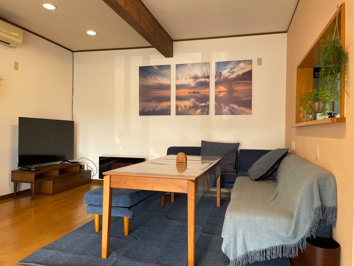Þetta 132㎡ heimili hefur verið endurnýjað að fullu í nútímalegt lúxusrými. Hér eru 3 einstök svefnherbergi, glæsilegt stofueldhús, 2 baðherbergi og 1 gufubað. Ókeypis bílastæði fyrir 2 bíla er í boði. Staðsett í 15 mínútna göngufjarlægð frá Toyama-stöðinni, 50 mínútna akstursfjarlægð frá Alpine Route, 1 klst. til Kanazawa. Þegar þú hefur valið herbergið þitt skaltu njóta þess að elda saman í eldhúsi eyjunnar. Endurnærðu þig í gufubaðinu, deildu minningum yfir „local sake“ í notalegri stofunni og endaðu daginn með djúpum andardrætti á svölunum.