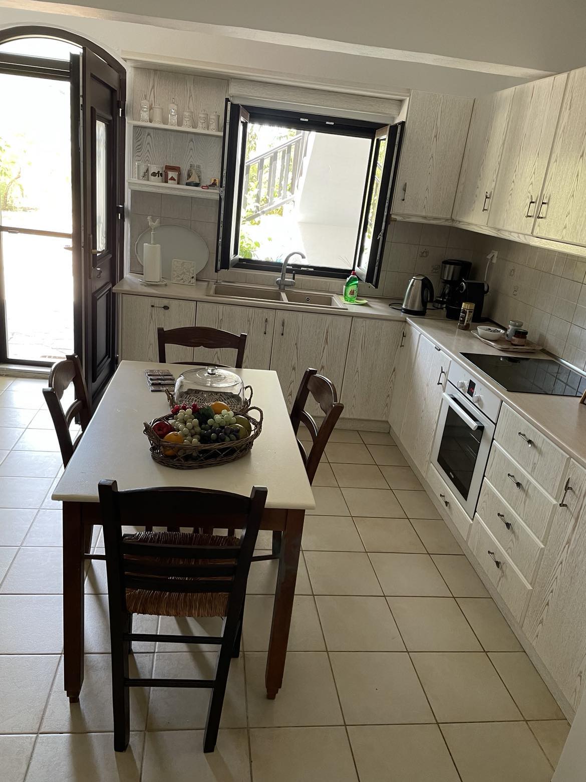 Íbúðin er í 6 íbúða fjölbýlishúsi og er staðsett í byggingunni Agios Nikolaos. Þetta er íbúðin í miðjunni. Það er notaleg stofa með snjallsjónvarpi og loftræstingu. Þar er einnig fullbúið eldhús. Það eru 2 svefnherbergi og 2 baðherbergi. Gestir geta notið útsýnisins af svölunum eða verið með grill í garðinum. Þú kemst gangandi að aðaltorgi þorpsins á þremur mínútum en þar er að finna alls kyns verslanir.