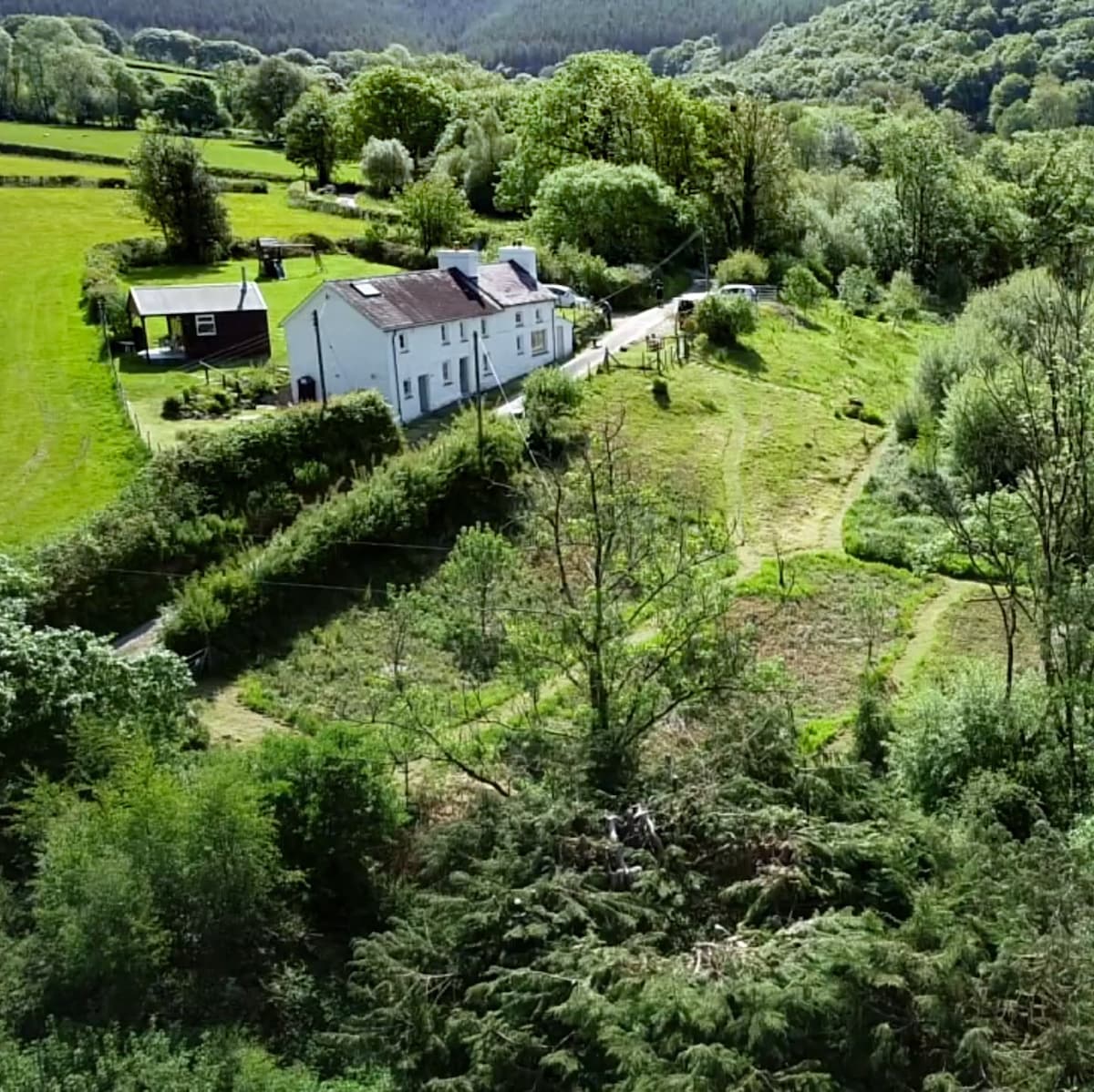 Bústaður í friðsælli velskri sveit. Opið eldhús/matsölustaður liggur að setusvæði með viðareldavél. Sérstök setustofa á neðri hæðinni er með upprunalegan ofn/eldavél og stórt gluggasæti með fallegu útsýni yfir dalinn. Aberdar er fullkominn staður til að komast í burtu frá öllu og er frábær bækistöð til að ganga, skoða fugla eða skoða fallegu sýslurnar Carmarthenshire og Ceredigion.