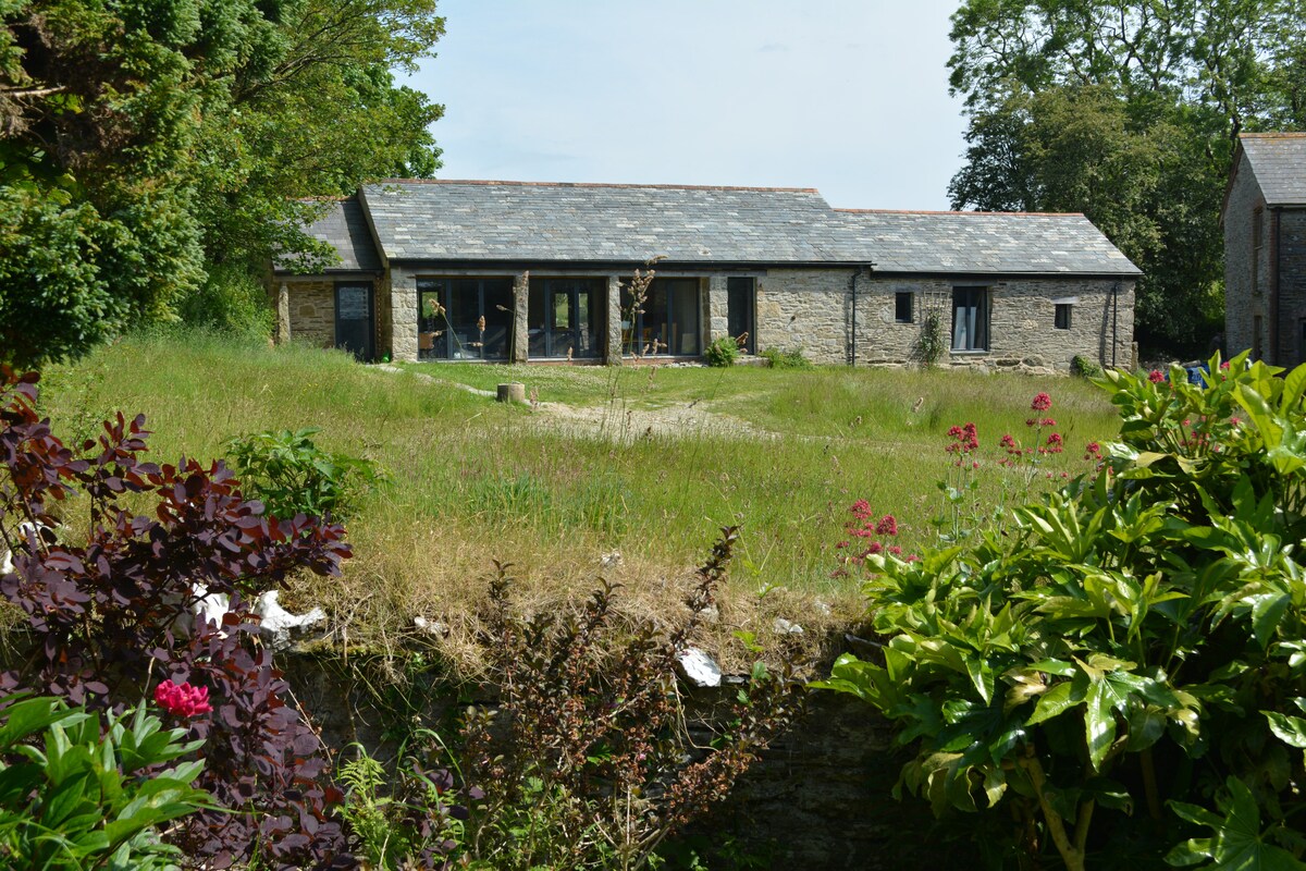Halamiling Barn er mjög friðsæll og fallegur staður til að slaka á, slaka á og verja tíma með fjölskyldu og vinum. Njóttu þess að rölta um garðana, vötnin þrjú og ræktarlandið. Eldaðu í frábærlega vel búnu og rúmgóðu nútímalegu eldhúsi, njóttu notalegra kvölda við eldinn og horfðu á kvikmynd með hljóðumgjörðarkerfinu. Allar innréttingar eru innréttaðar í mjög góðum og listrænni hönnun. Það er staðsett í 50 hektara af North Cornish ræktunarlandi.