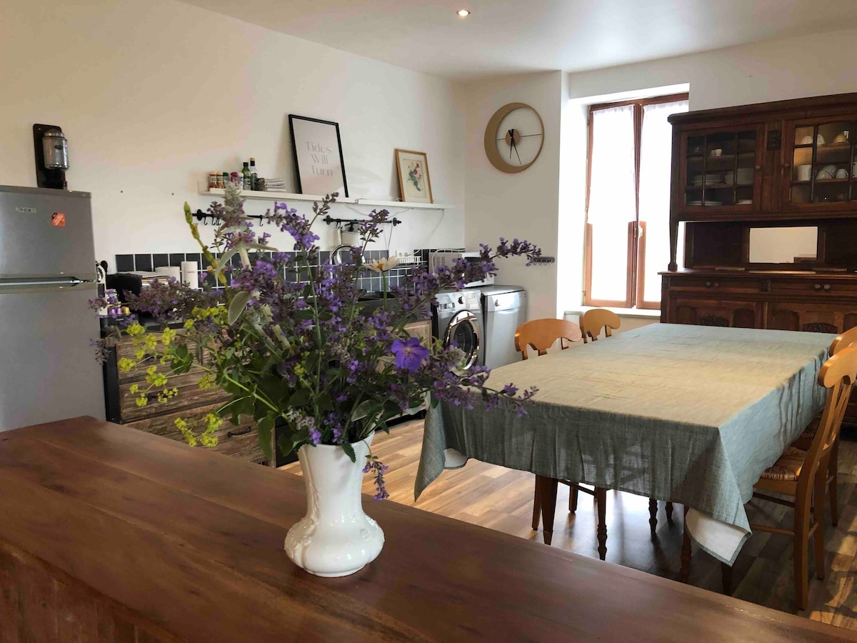Heillandi þorpshús með garði, staðsett í rólegu umhverfi, tilvalið fyrir afslöppun, bjart og þægilegt. Nálægt verslunum í miðbænum 850m, bakaríi, slátrara, börum, apótekum, matvöruverslunum, bensínstöð, veitingastöðum, sveitamörkuðum í júlí og ágúst. Þetta hús sameinar virka eða afslappandi dvöl milli náttúru og skynjunar. Frábær staðsetning, 3 km frá frábæru Bláfánavatni og í hjarta Massif des Monédiéres, sem er grænt umhverfi milli hæða og skóga.