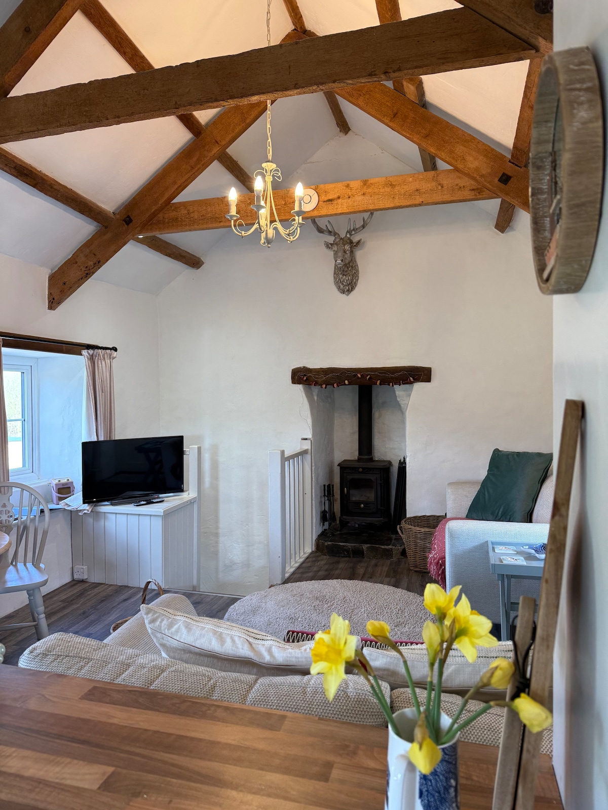 Gamli sunnudagaskólinn er staðsettur í fallega og friðsæla þorpinu Harrow með mögnuðu útsýni yfir Tamar-dalinn og víðar. Grade II skráð fyrrum Wesleyan sunnudagaskólinn heldur mörgum upprunalegum eiginleikum sínum og hefur nýlega verið endurnýjaður að háum gæðaflokki með nútímalegri innréttingu, þar á meðal stóru ensuite svefnherbergi með búningsklefa og glerskilrúmi sem gefur millihæð tilfinningu fyrir fallegu opnu rými. Skoðaðu eða slakaðu á í þessu notalega 5* afdrepi!