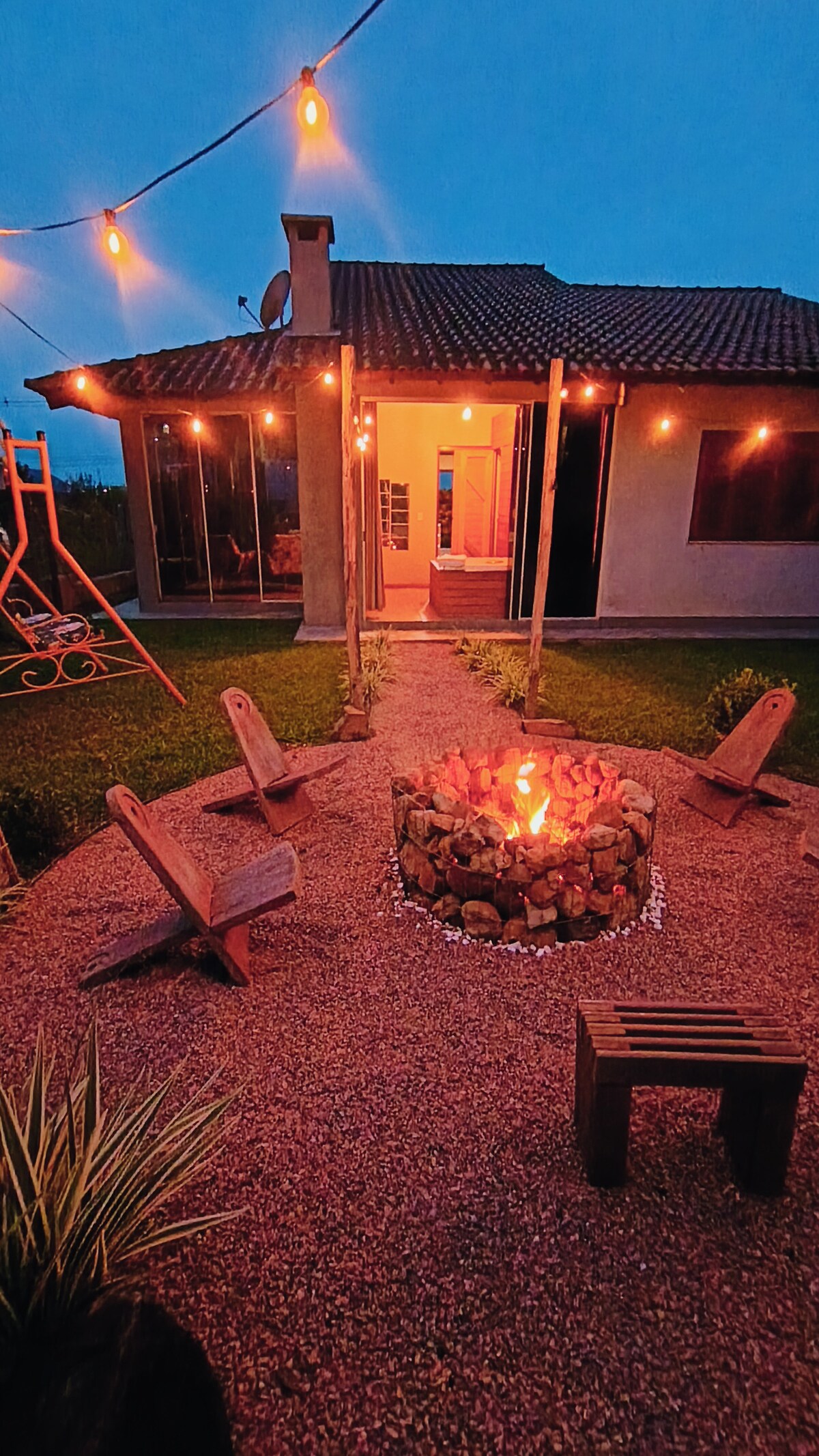 Kofinn er notalegur afdrep með 270° víðáttumynd þar sem sólarupprás og sólsetur eru sjónarspil. Að kvöldi til skapar stjörnubjart himinsskíf og borgarljós rómantíska stemningu, hvort sem það er við eldstæðið eða steinarininn. Úr rúminu eða sófanum sést sólarupprásin í gegnum glervegginn að framan. Allt þetta innan við 20 mínútur frá Gramado, með 13 km af malbikaðri vegi og innan við 1 km af kyrrlátri ómalbikaðri vegi. Komdu og upplifðu eftirminnileg augnablik í náttúrunni, án þess að þurfa að fórna þægindum.✨