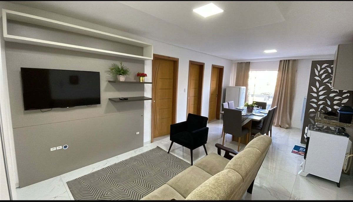 Þessi eign er staðsett í miðborg Videira SC og býður upp á mikil þægindi og þægindi. Íbúð fyrir fyrirtæki sem veita þjónustu í borginni okkar er mjög vel uppsett og þægilegt. Innan 50 metra radíuss færðu aðgang að: MATVÖRUVERSLUNUM, APÓTEKUM, BÖNKUM, BENSÍNSTÖÐ og UPA. Komdu og hittu okkur...