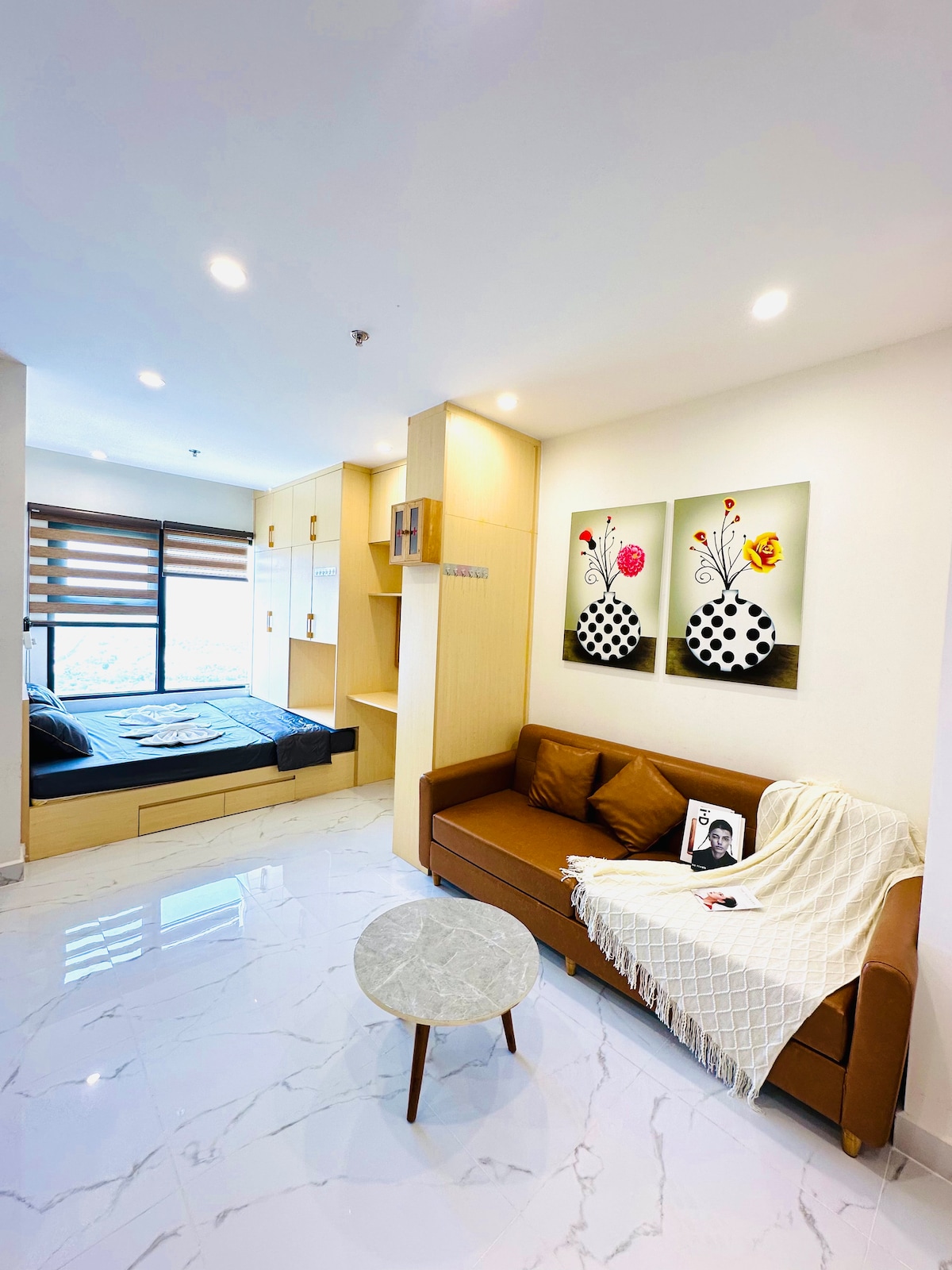Njóttu dvalarinnar í þessari nútímalegu stúdíóíbúð sem er staðsett á efri hæð og býður upp á meira næði, betra dagsbirtu og afslappandi andrúmsloft. 📍 Staðsett í Vinhomes Grand Park, nálægt Vincom-verslunarmiðstöðinni, Light Park og fjölda matsölustaða. 🌿 Aðalatriði: • Há hæð – kyrrlát og afskekkt • Fallegt útsýni (borg/almenningsgarður – bạn chỉnh lại đúng view) • Ókeypis sundlaug • Sjálfsinnritun • Fullbúið með öllu sem þarf 💼 Tilvalið fyrir gesti sem kjósa þægindi, næði og úrvalsupplifun.