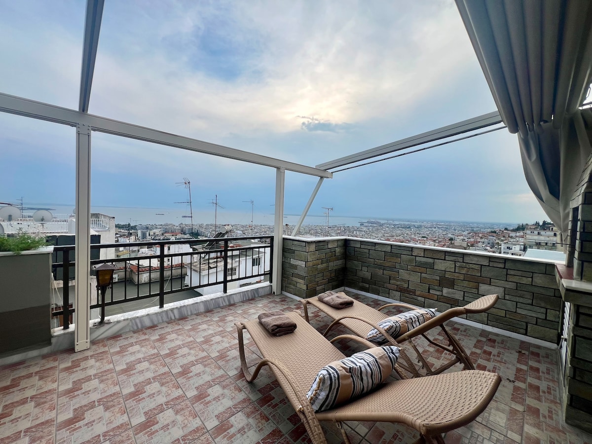 Kynnstu töfrum Þessaloníku frá notalegu stúdíói okkar með verönd í hjarta gamla bæjarins! Nýuppgerða stúdíóið okkar býður upp á stórkostlegt útsýni yfir borgina frá veröndinni. Njóttu kaffibolls á morgnana eða eftir að hafa skoðað borgina yfir daginn, slakaðu á með bók eða drykk og horfðu á borgina vakna til lífs. Enginn lyfta, en ókeypis bílastæði.
