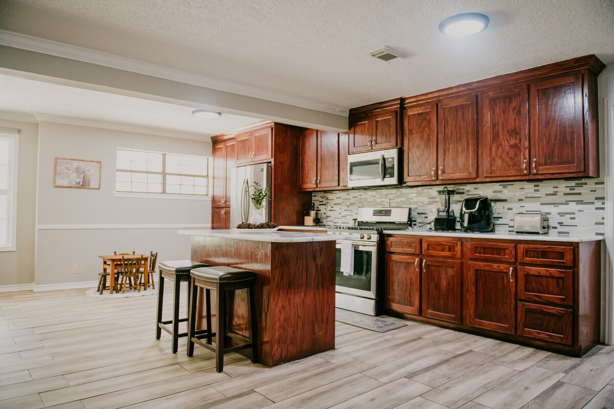 Stökktu út á fallega þriggja svefnherbergja, tveggja baðherbergja heimilið okkar á friðsælu cul-de-sac með næstum 2 hektara eign til að njóta. Þetta opna hugmyndaheimili er fullkomið fyrir fjölskyldur eða hópa sem vilja friðsælt frí í aðeins 10 mínútna akstursfjarlægð frá Lake Livingston bátarömpum. Vinsamlegast hafðu í huga að bílskúrar og herbergi með læstum hurðum eru einkarými og gestir hafa ekki aðgang að þeim. Við vonum að þú sýnir þessu skilning.