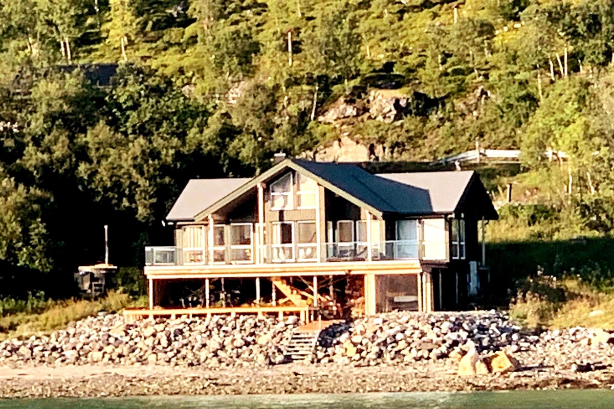 Flott og nútímaleg íbúð í háum gæðaflokki! Byggt árið 2021. Nálægt náttúrunni fyrir fjallaferðir, skíði og róður. Farðu á kajak, farðu á grófustu - eða auðveldustu - fjallstindana með randonee eða fæti. Tromsøs næturlíf með frábærum veitingastöðum í nokkurra mínútna fjarlægð. Tvö tvíbreið svefnherbergi. Staðsett alveg við sjóinn. 12 mín frá flugvellinum, 14 mín frá stærstu verslunarmiðstöð Norður-Noregs og 20 mín frá borginni. Frábær matvöruverslun í 4 mín fjarlægð. Engin götuljós, engin umferð, ekkert malbik. Verið velkomin!