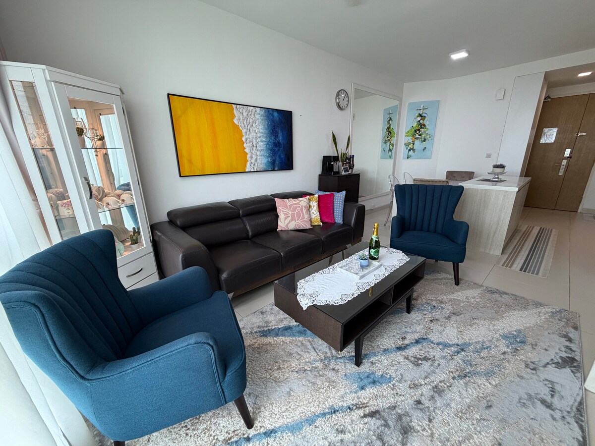 Upplifðu glæsilegt líf í Tropicana, steinsnar frá Tropicana Golf & Country Resort og umkringt helstu íbúðum eins og Tropicana Avenue, Casa Tropicana og Tropicana Grande. Haganlega hönnuð eining blandar saman þægindum, fáguðu efni og sérvalinn lista yfir þægindi sem fullnægja öllum þörfum þínum. ✔ Tvö þægileg svefnherbergi ✔ Snjallsjónvarp og hátalari ✔ Tvær svalir ✔ Coway vatnsskammtari (val um heitt, kalt og umhverfisvænt vatn) ✔ Lofthreinsari fyrir hreint og ferskt loft ✔ 1 sérstakt bílastæði