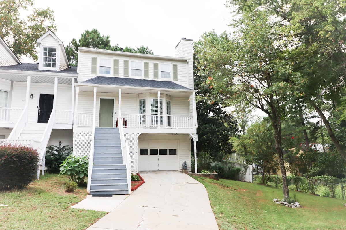 Njóttu dvalarinnar á bæjarhúsinu okkar í Smyrna. Þetta er 2 rúm/2 baðherbergi með 4 rúmum í heildina. 1 konungur, 2 fullir og Queen útdraganlegur sófi. Fullbúið eldhús með öllu sem þú þarft til að útbúa sælkeramáltíð. Innifalið í leigunni eru öll tæki, 3 snjallsjónvarp, þvottavél/þurrkari, borðstofuborð, sófi með queen-svefnsófa og lúxus vínylplankagólf. Yfirbyggð verönd er á baklóð og þilfari með grilli. Staðsett nálægt veitingastöðum, almenningsgörðum, skemmtun og greiðan aðgang að 285. Go Braves!