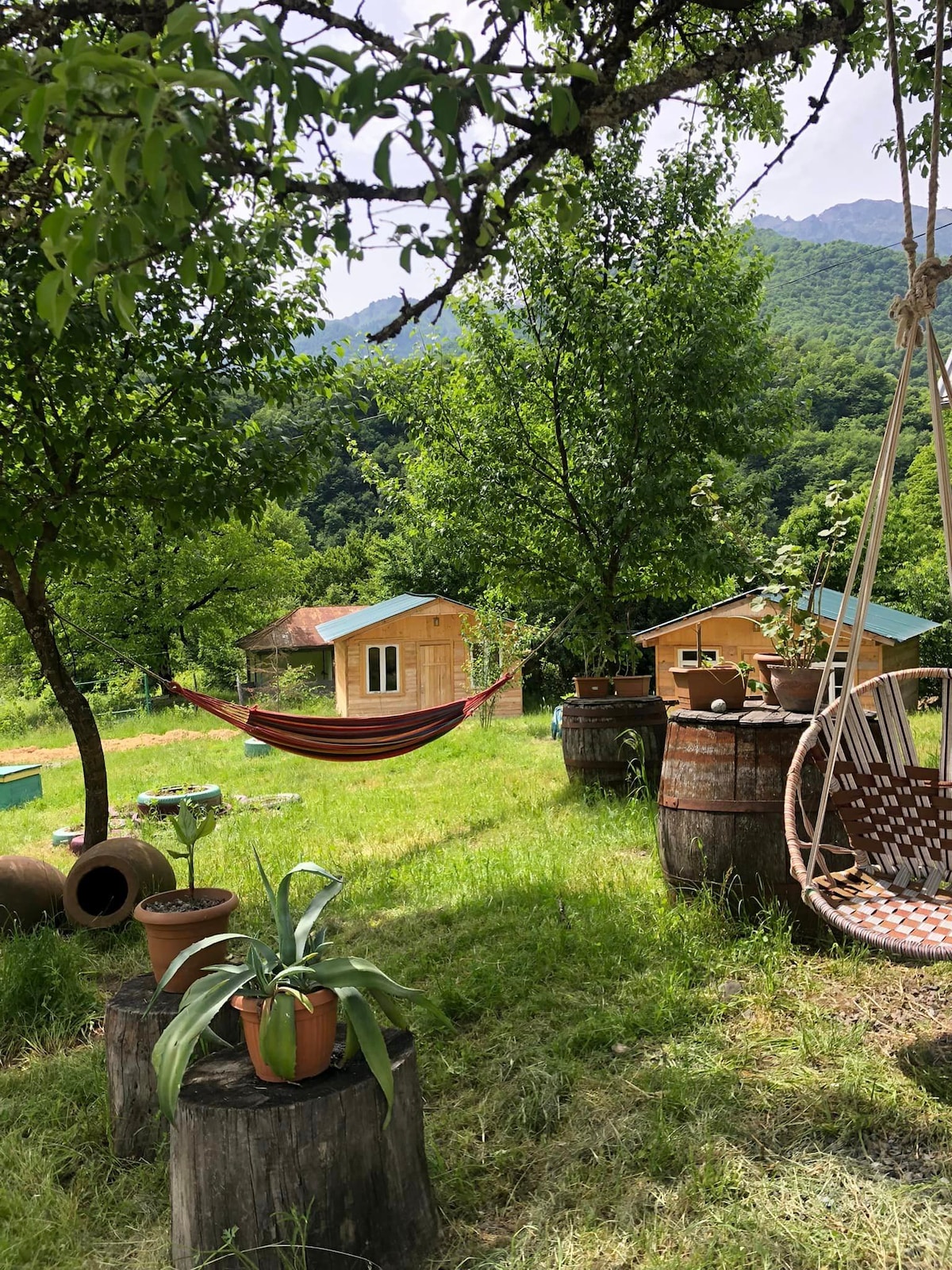 Upplifðu ekta georgískan sjarma í notalegu bústöðunum okkar í fallegri vínekru. Hver bústaður býður upp á magnað útsýni yfir Rioni-dalinn og hin tignarlegu Kákasusfjöll. Njóttu nýs hefðbundins brauðs eins og Lavashi, Rachuli Lobiani og Khachapuri sem er bakað á staðnum í hefðbundnum „Tone“ ofni. Smakkaðu hið þekkta Khvanchkara vín sem er búið til úr þrúgum sem eru ræktaðar þar sem þú gistir. Í aðeins 15 mínútna göngufjarlægð er komið að fallegu Askistskali-ánni þar sem hún tengist Rioni.