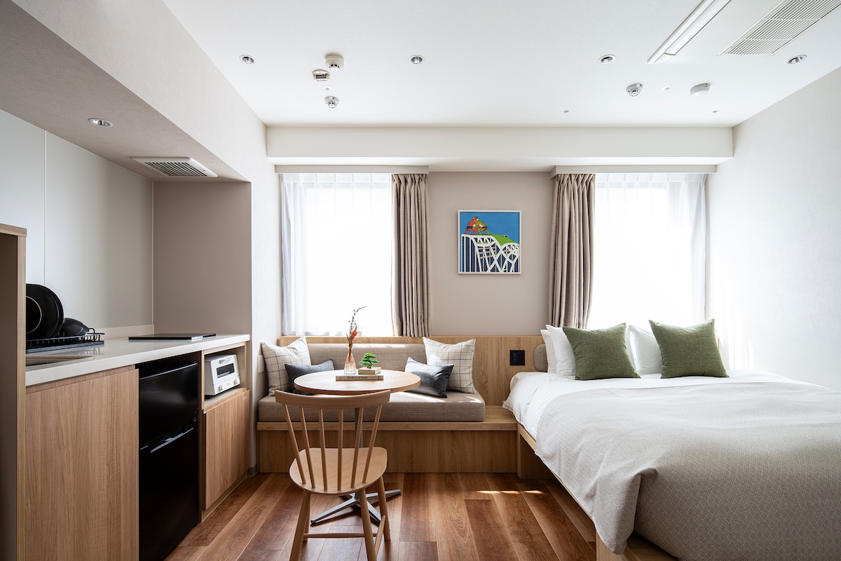 Sérmerkt hótel með starfsleyfi. Ókeypis herbergisþrif á 7 nátta fresti fyrir langtímadvöl sem varir í 21 nótt eða lengur. Þú getur skoðað fleiri tegundir herbergja á notendalýsingu gestgjafa! Glænýjum herbergjum okkar er hægt að lýsa sem skandinavískum og flottum japanskri naumhyggju+virkni. Herbergið er fullkomið fyrir stafræna hirðingja, pör, viðskiptaferðamenn, ferðamenn sem þurfa nándarmörk. Eignin er í boði í mismunandi litasamsetningum en öll eru þau með sömu stærð og þægindin.