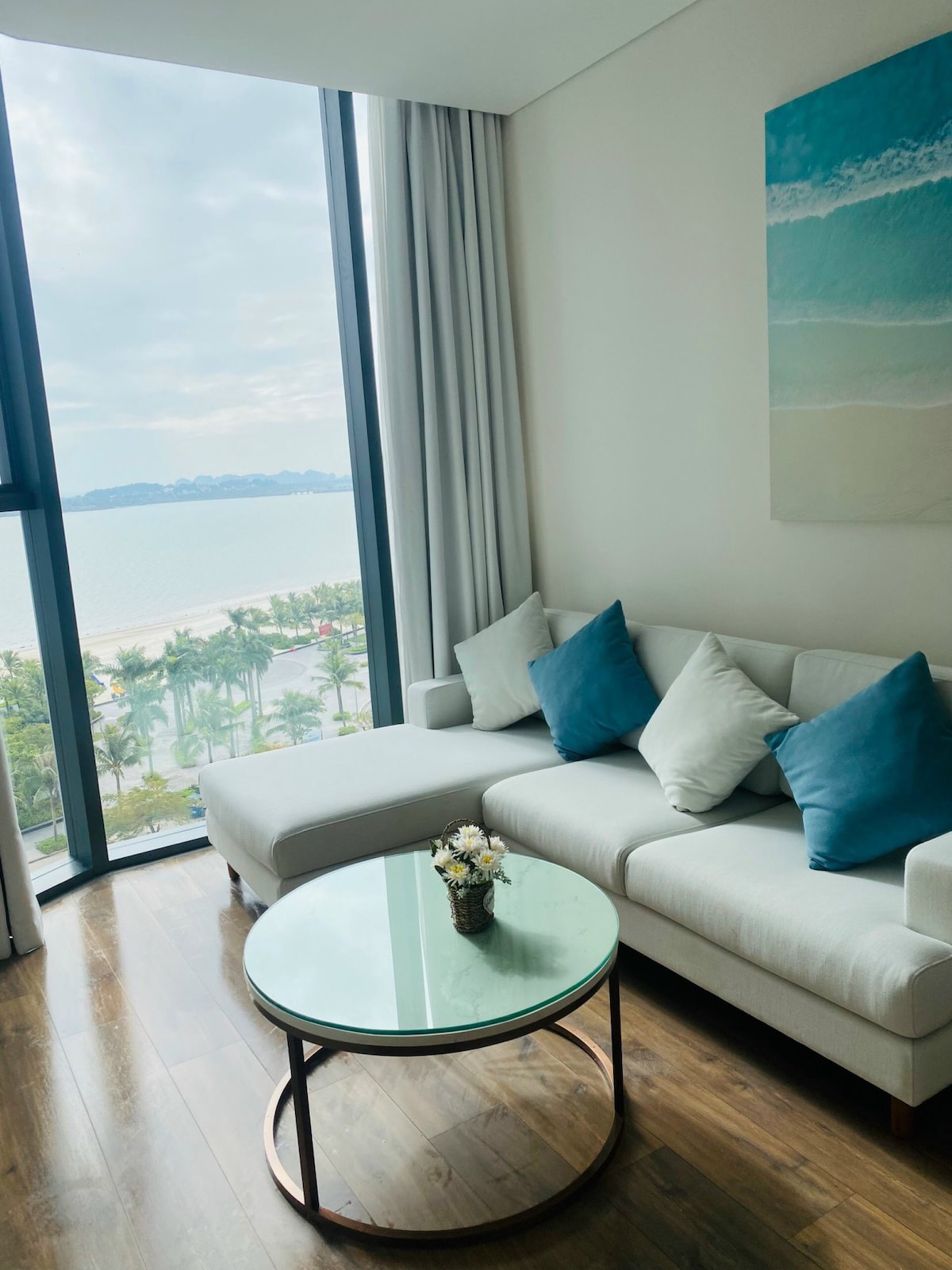 Luxury apartment à la carte Ha Long - the highest 41 floor building in Ha Long, the apartment on the 32nd floor has 2 bedrooms and a living room with glass ocean views, at the foot of the building is a white sand beach, 5-stars standard room facilities are fragrant and clean, suitable for families with young children or groups of friends who want to have a common space when traveling but still need a private, closed bedroom, especially when traveling. Watch the sea 24/24 even lying on your bed