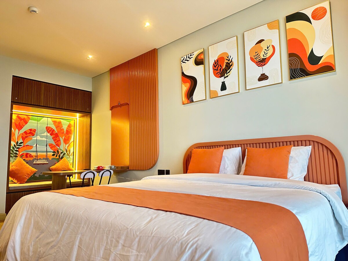 - Điểm nhấn chính là phòng hướng biển nơi bạn có thể nhâm nhi ly cà phê buổi sáng, ngắm bình minh rực rỡ hay thư giãn cùng hoàng hôn lãng mạn trên biển. - Căn hộ gồm 1 phòng ngủ, phòng khách liên thông bếp và thích hợp cho cặp đôi hoặc gia đình nhỏ. Nội thất tiện nghi: điều hòa, wifi tốc độ cao, smart TV, bếp nấu,… mang đến cảm giác thoải mái như ở nhà nhưng vẫn trọn vẹn trải nghiệm nghỉ dưỡng. - Vị trí ngay cạnh bãi biển – chỉ vài phút đi bộ, bạn đã có thể hòa mình vào làn nước trong xanh.