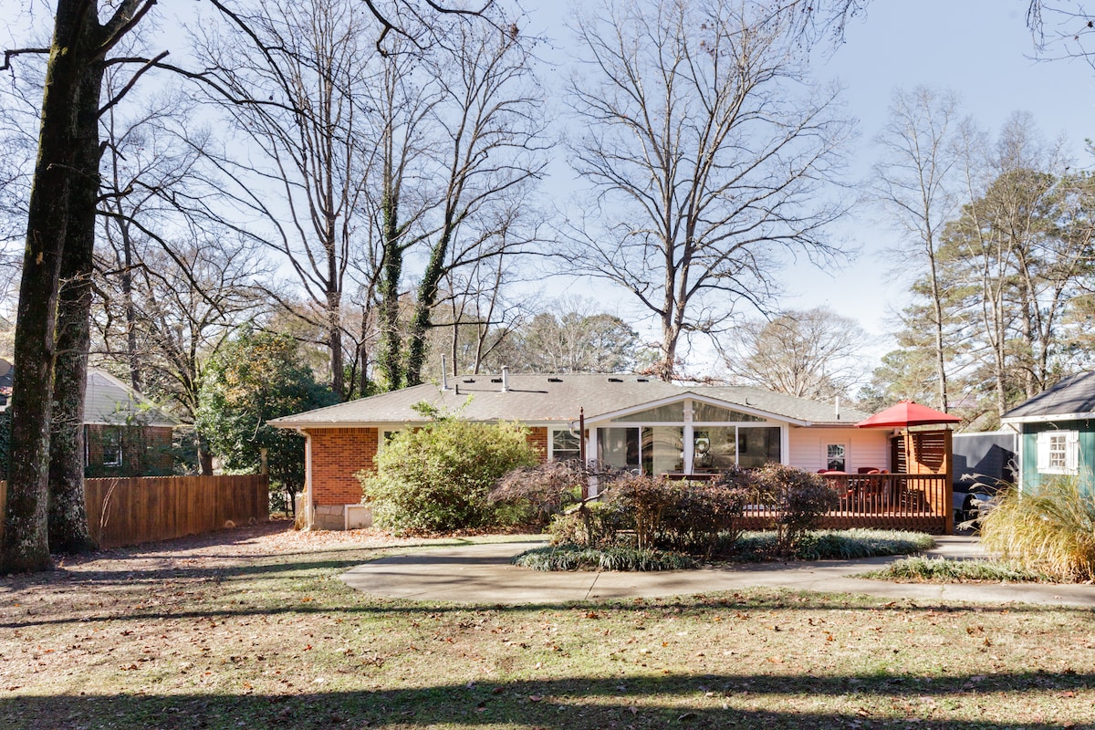 Húsið er í íbúðarhverfi sem var byggt á sjötta áratugnum. Hann er staðsettur mitt á milli 3/4 hektara sem liggja að trjávaxinni lóð sem gefur fólki tilfinningu fyrir því að vera í skóginum í miðri borginni. Historic Main Street í Tucker er í 1 km fjarlægð og þar er að finna marga veitingastaði og sérkennilegar verslanir. Stone Mountain, uppáhalds skemmtigarður Atlanta, með áhugaverðum stöðum, gönguferðum og sýningum er í aðeins 12 km fjarlægð. Ef þú ert að leita að skyndibita til að borða Shorty 's Wood Fire Pizza er rétt handan við hornið.