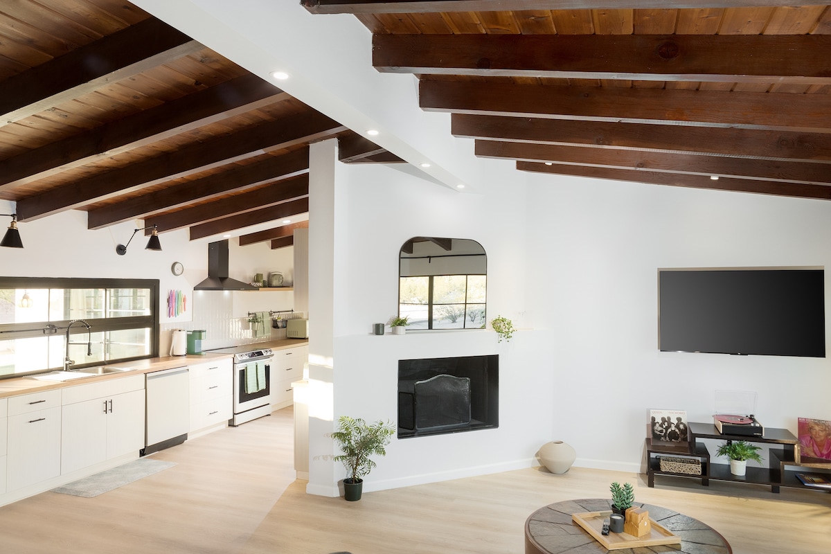Verið velkomin á þetta magnaða heimili frá miðri síðustu öld sem er aðeins í boði á Airbnb í 70 ár! Heimilið var keypt af upphaflega eigandanum Splane-fjölskyldunni sem var byggð árið 1955. Árið 2021 eftir kaupin gekk heimilið í gegnum umfangsmiklar tveggja ára langar endurbætur til að uppfæra en viðhalda upprunalegum sjarma. Staðsett í sögulega hverfinu Harold Bell Wright sem er ein af földum gersemum Tucson. Það er með fjórum svefnherbergjum og tveimur baðherbergjum á 1 hektara einkalóð sem rúmar auðveldlega 8 manna hóp! Frábært fyrir lengri dvöl!