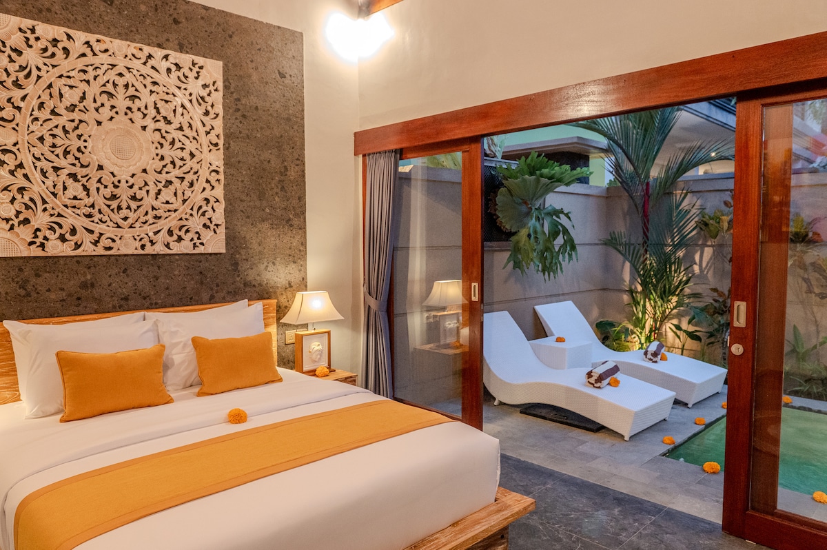 Láttu umhyggjuna hverfa í þægilegum skálanum með útsýni yfir saltvatnslaugina þína og glæsilegan garð. Skolaðu af undir regnsturtunni á stóra baðherberginu undir berum himni og slakaðu svo á í garðskálanum með hrísgrjónaakri og útsýni yfir hitabeltisgarðinn. Villa Via er lúxus og til einkanota með rúmgóðu svefnherbergi með 4 pósta king-size rúmi, fataherbergi og baðherbergi. Stofan er með útsýni yfir frábæran garðinn og sundlaugina til að slaka á.